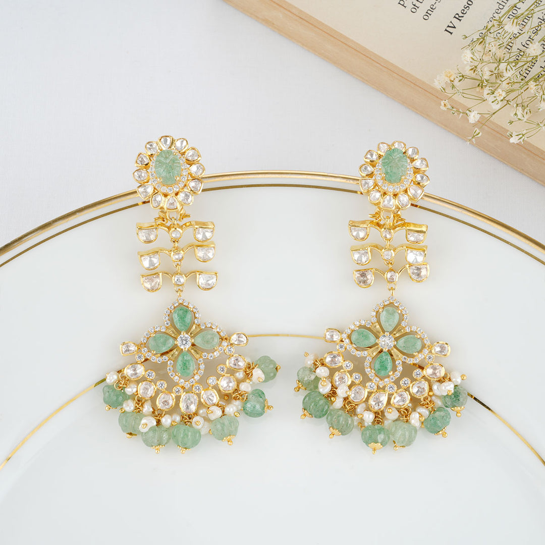 These earrings are crafted from 92.5 silver and 24kt gold-plated metals, with semi-precious stones embedded for added sparkle.