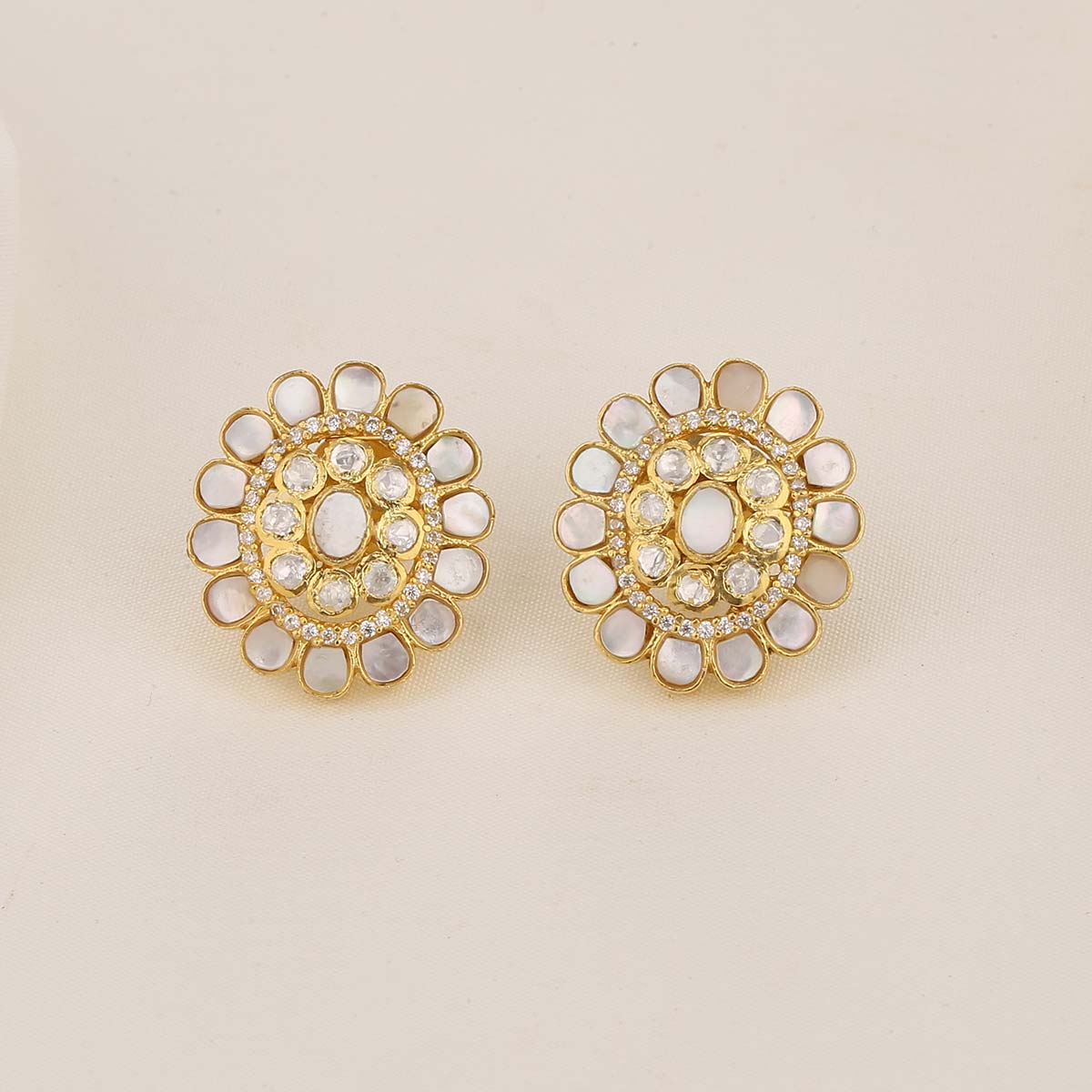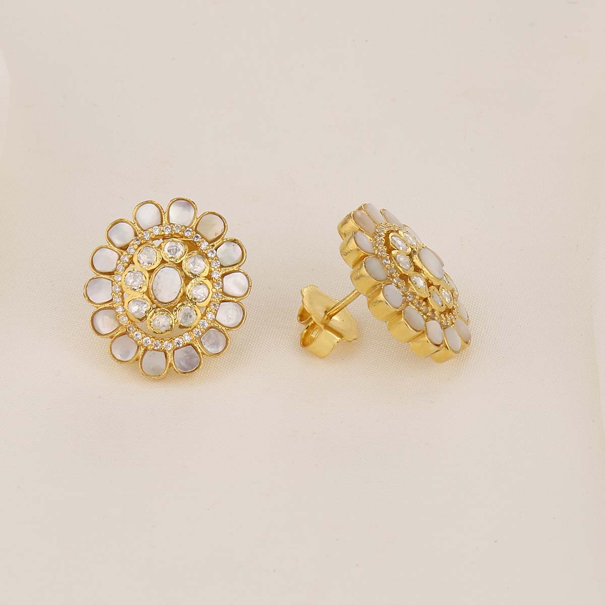 Fabricated from 92.5% sterling silver and 24-karat gold plating, these earrings are adorned with semi-precious stones.
