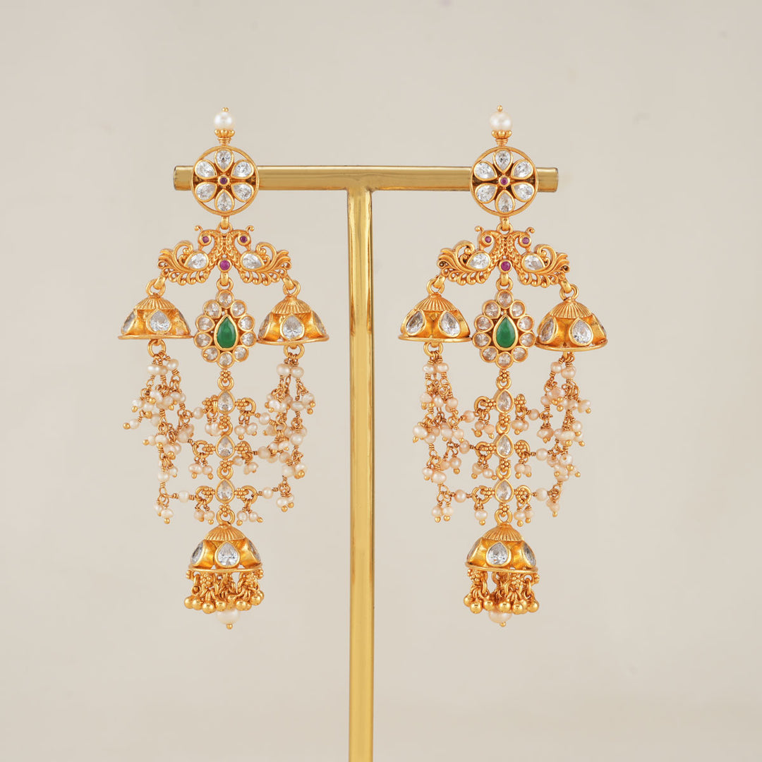 These earrings are crafted from 92.5 silver and 24kt gold-plated metals, with semi-precious stones embedded for added sparkle.