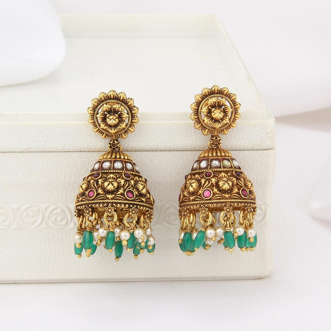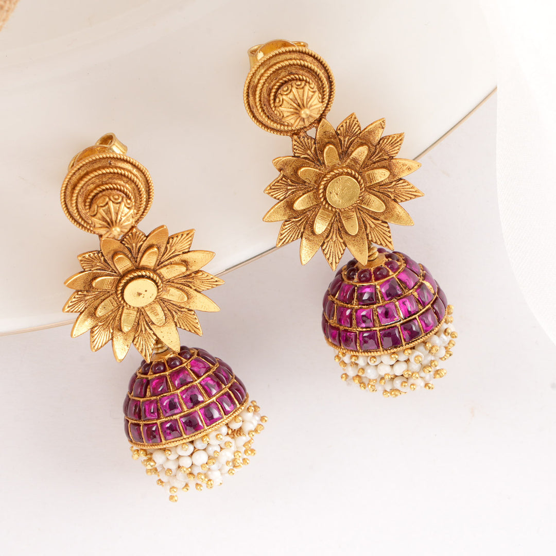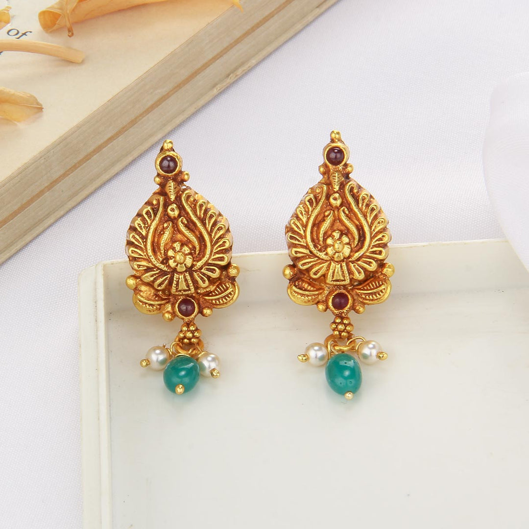 Gold Plated Silver Stone Earrings | Silver Earrings with Gold Plated