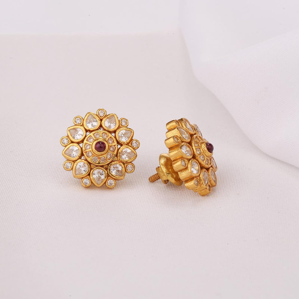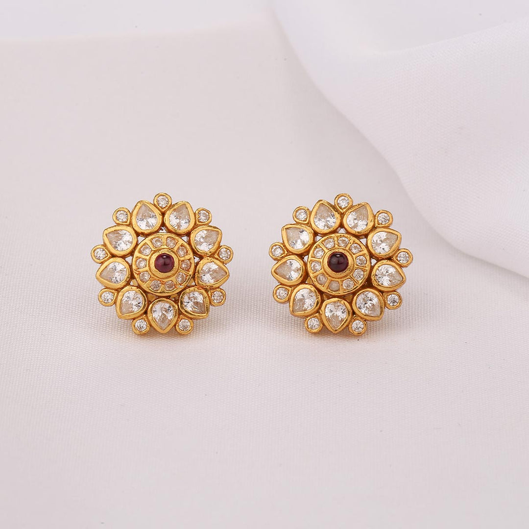 Gold Plated Silver Stone Earrings | Silver Earrings with Gold Plated