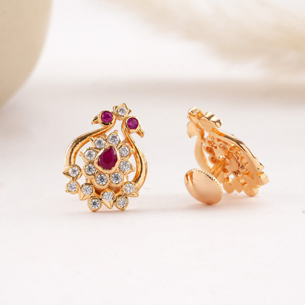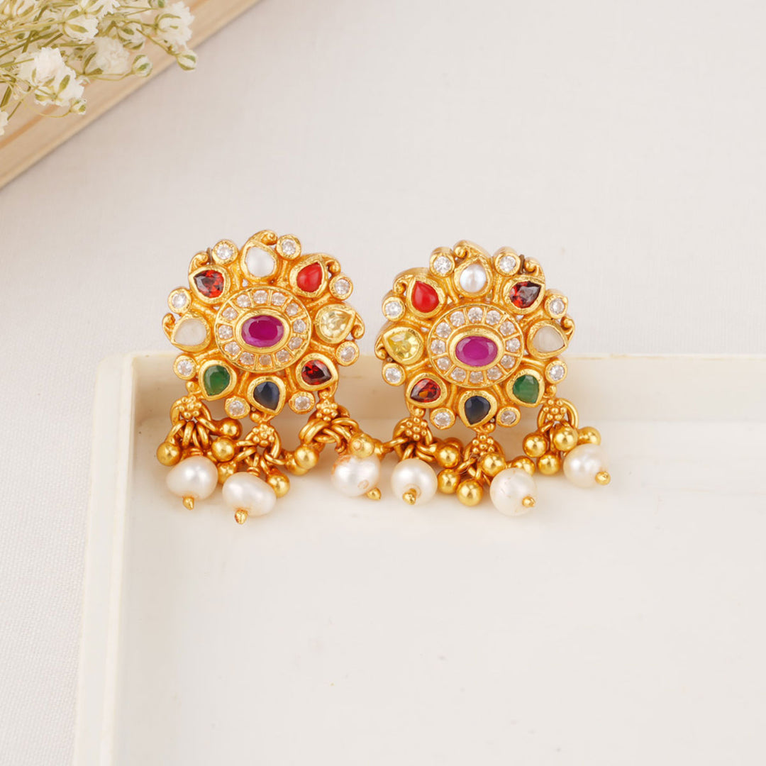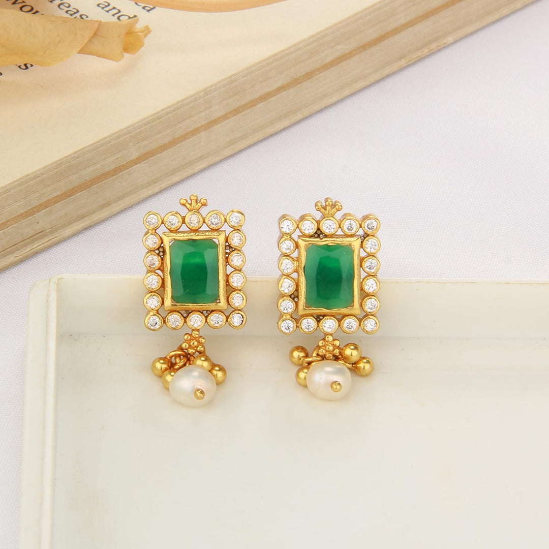 Gold Plated Silver Stone Earrings | Silver Earrings with Gold Plated