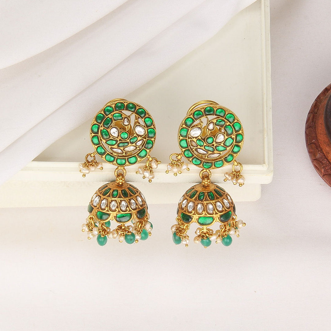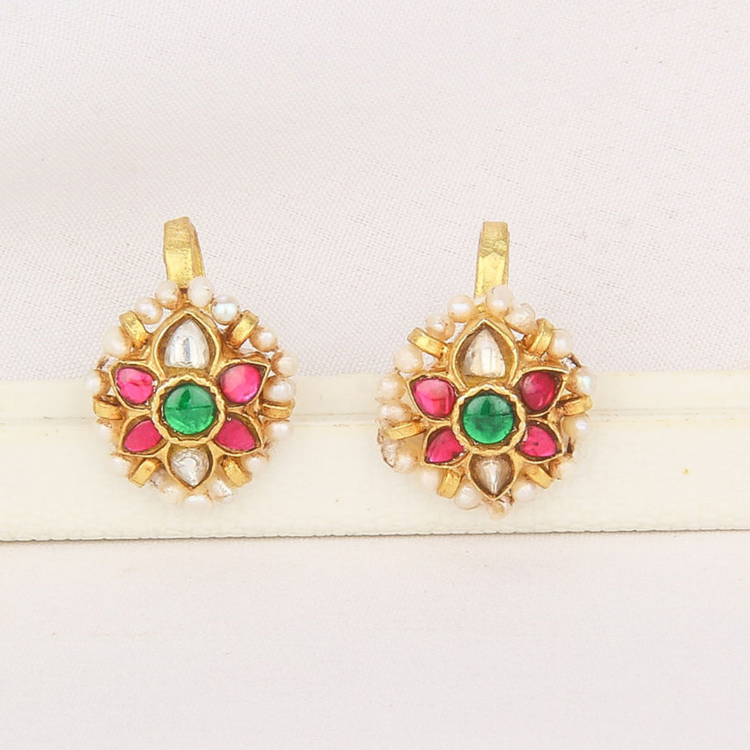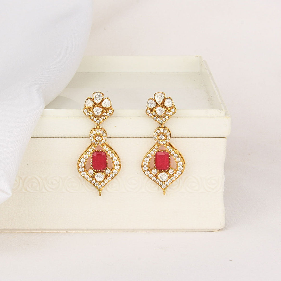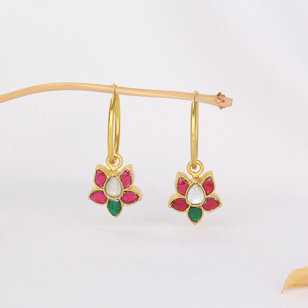 Gold Plated Silver Stone Earrings | Silver Earrings with Gold Plated