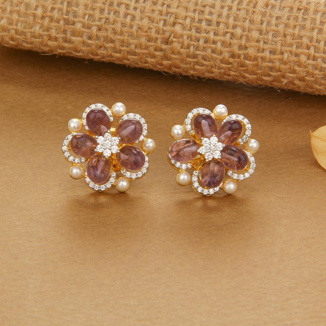 Gold Plated Silver Stone Earrings | Silver Earrings with Gold Plated