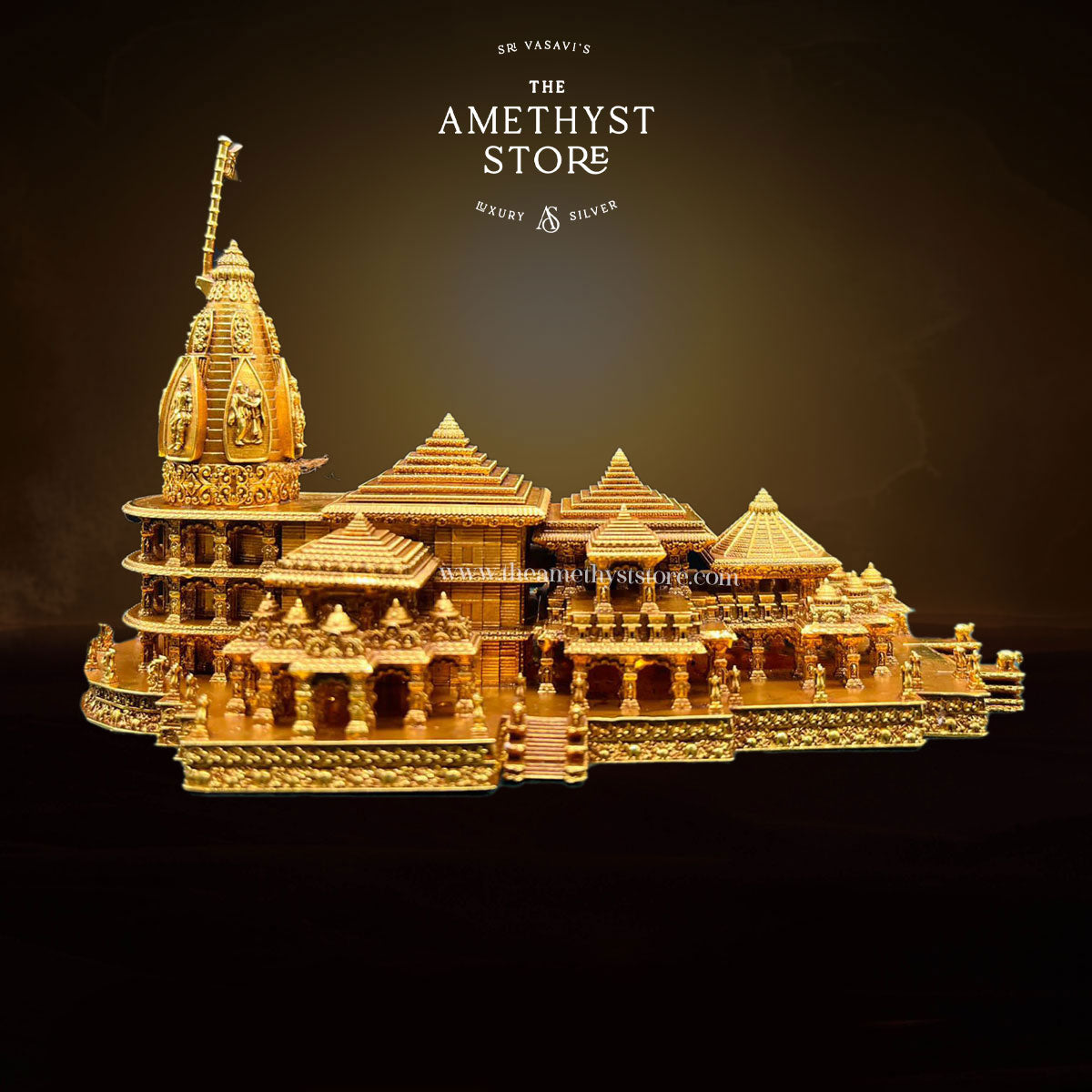 92.5 silver, 22kt Gold plated Pran - Pratishtha of Shri Ram Mandir In Ayodhya. It reflects the timeless beauty and spiritual significance of Ayodhya's revered temple. Delicately Handcrafted Masterpiece is an emotional moment for every Indian.