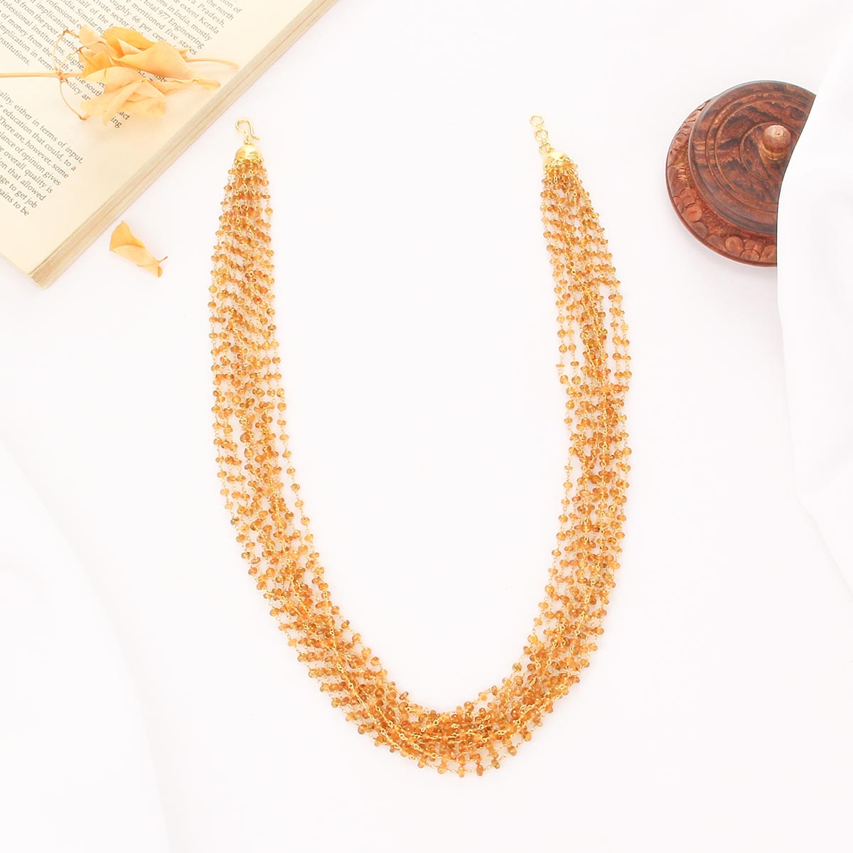 The Necklace/chain has real precious and natural beads and is stung on 92.5 gold-plated silver.