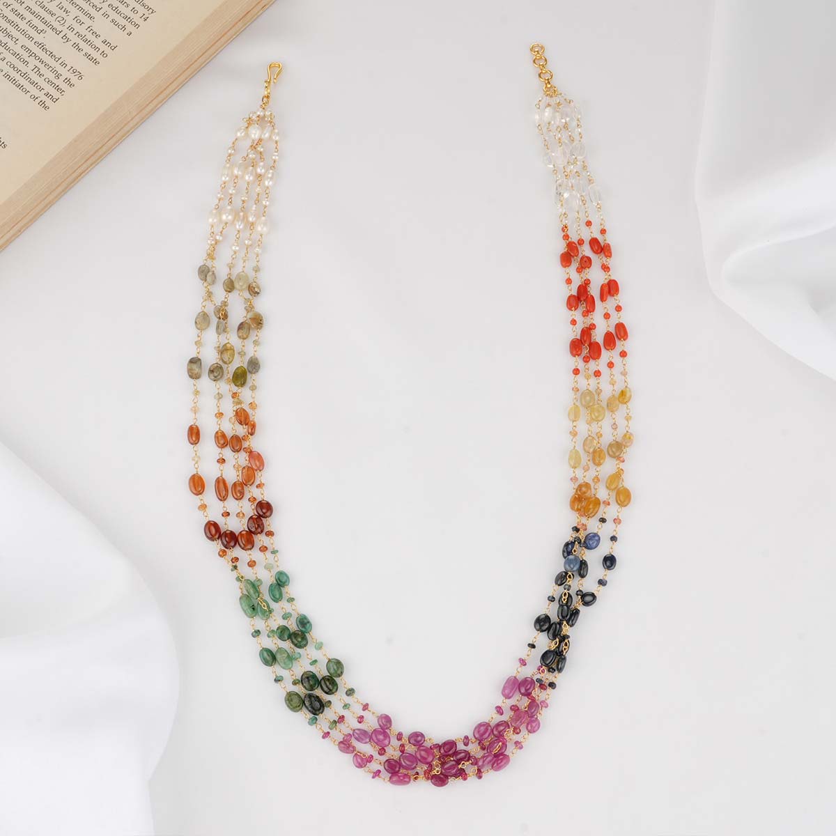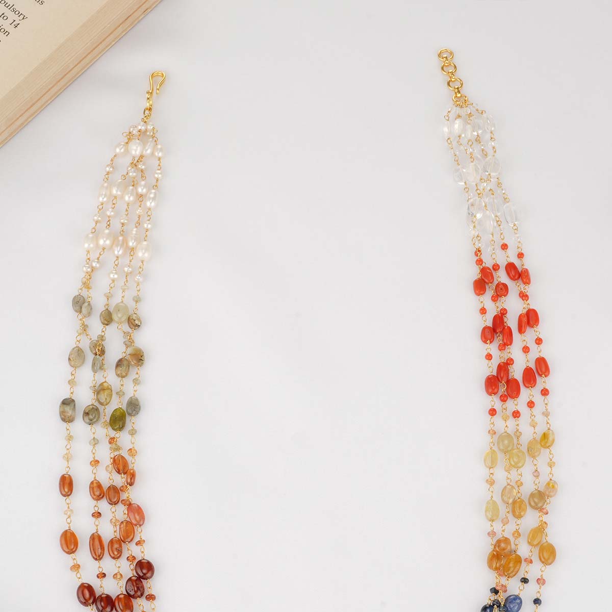 The Necklace/chain is with real precious and natural beads and is stung on 92.5 Gold plated silver.