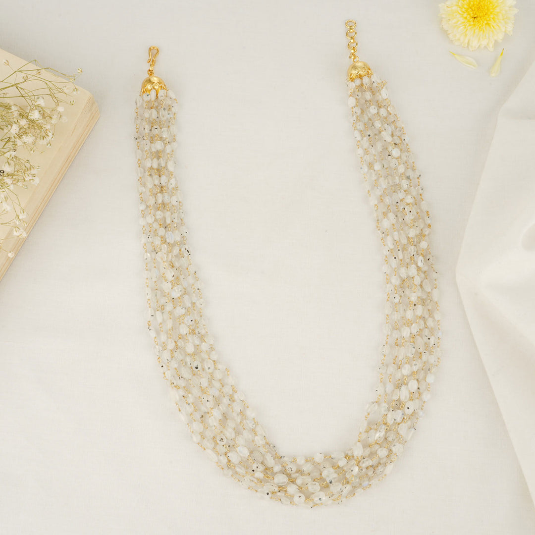 The Necklace/chain is with real precious and natural beads and is stung on 92.5 Gold plated silver.