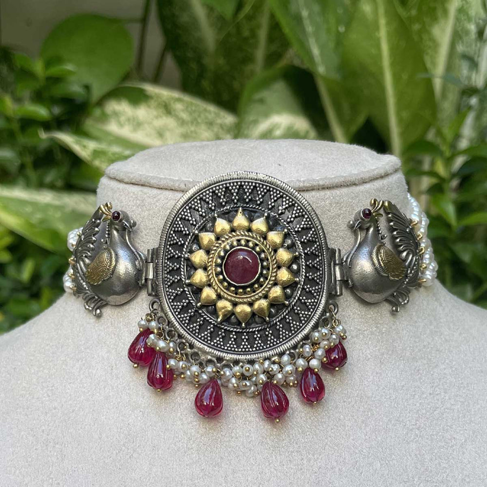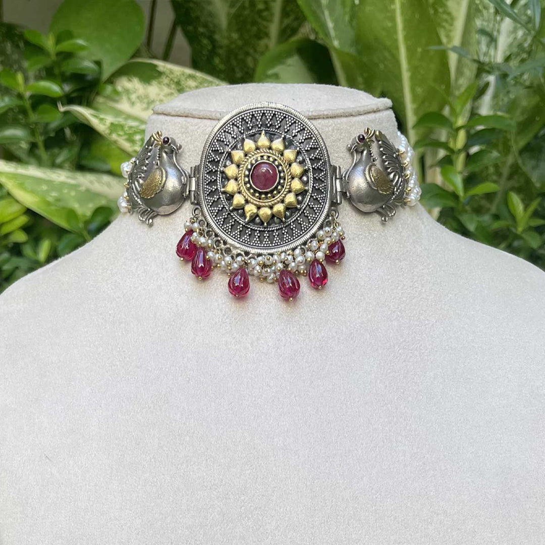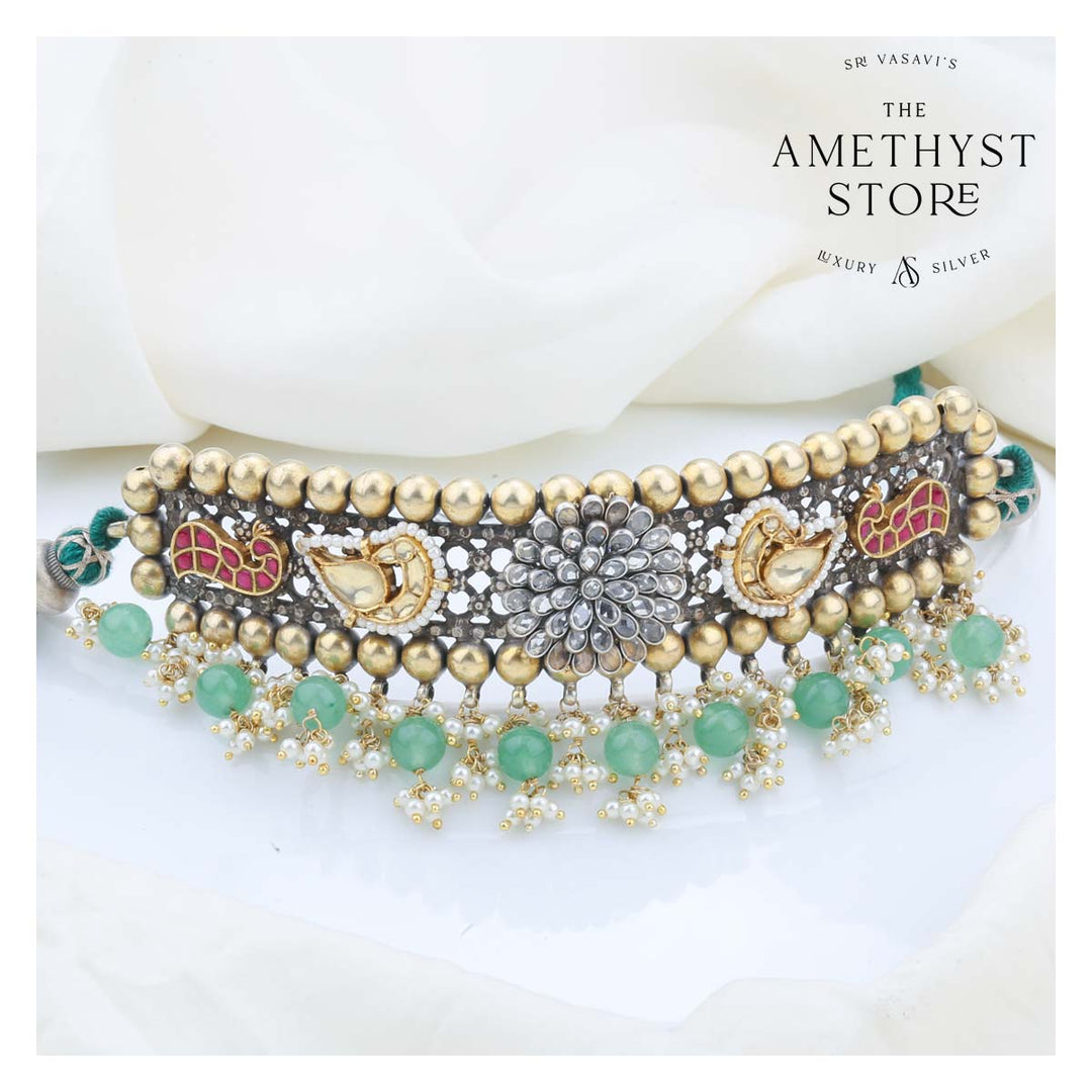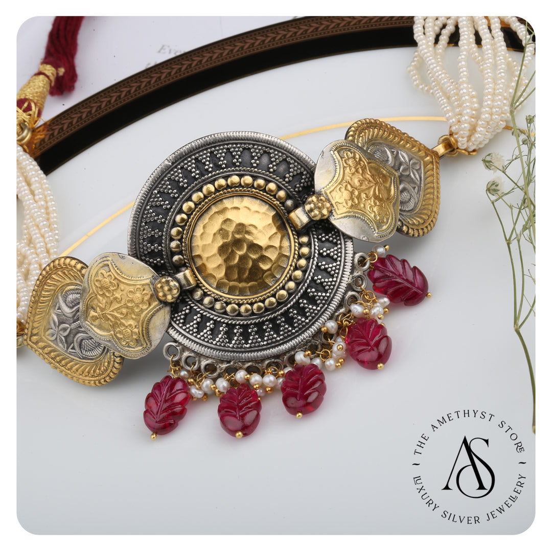 Dual Tone Gold Plated Silver Necklace | Bridal Silver Necklace Sets