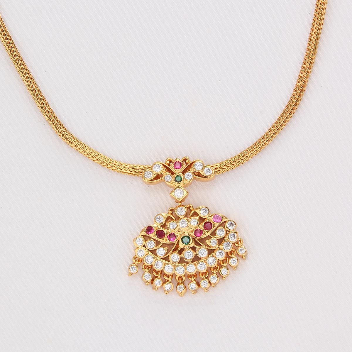 This 92.5 Silver, 24 kt gold-plated, stylish Necklace is studded with semi-precious stones to make a stunning statement. Perfect for any special occasion.