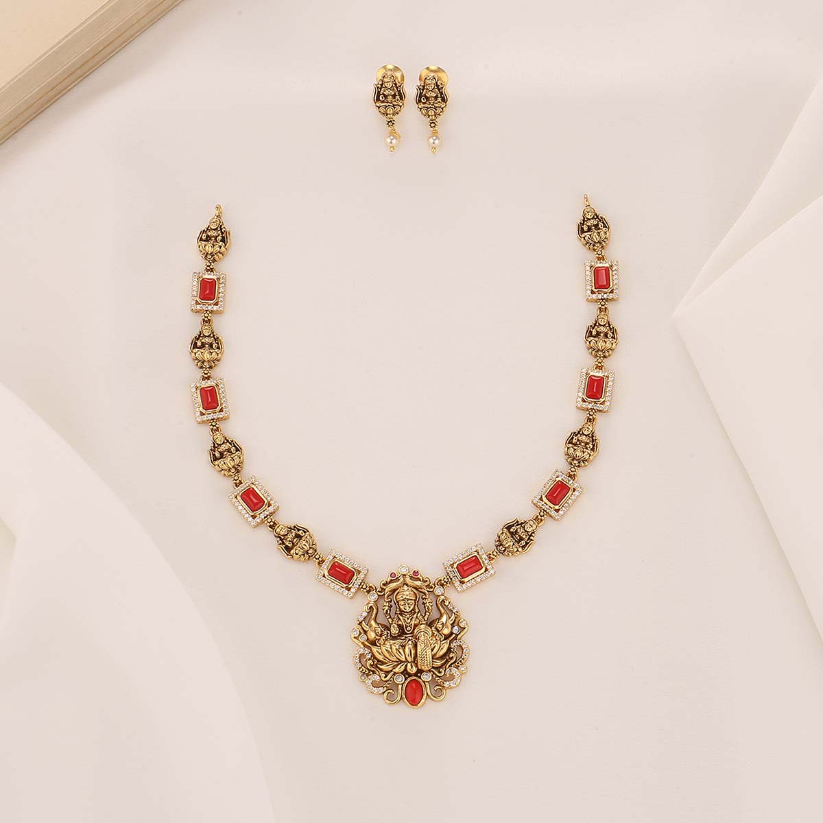 Crafted from 92.5 Silver and 24kt Gold Plated, this elegant Nagas Necklace Set features stunning semi-precious stones for a truly dazzling effect. Its unique design and exquisite style will undoubtedly make a grand impression.