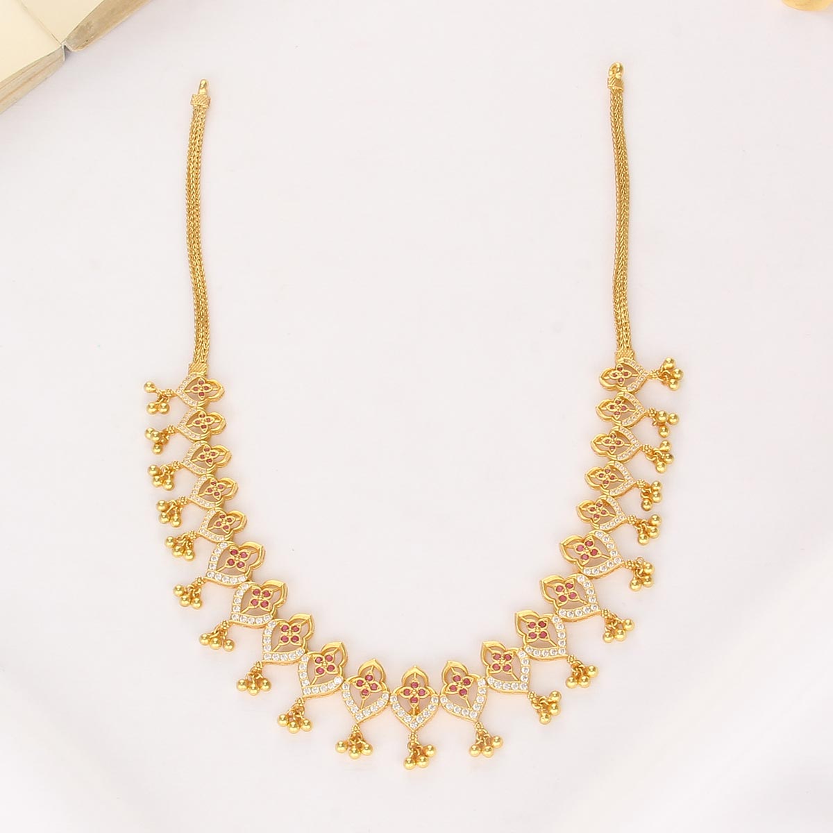 This necklace is crafted from 92.5 Sterling Silver and features 24-karat gold plating as well as semiprecious stones.