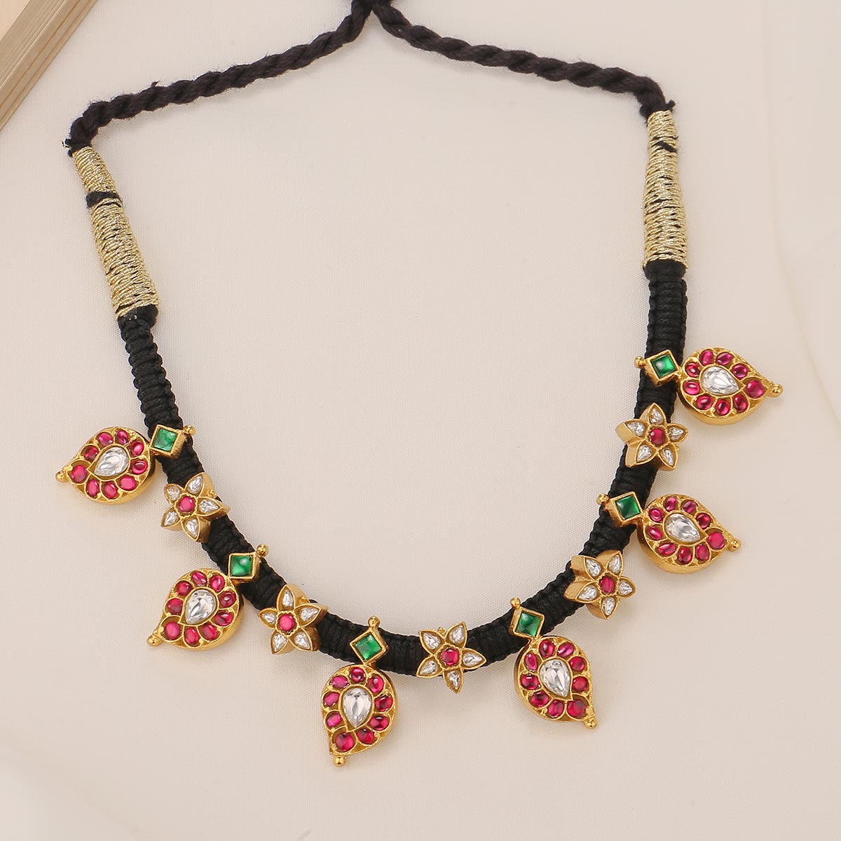 92.5 Silver, 22kt Gold Plated Kundan Rope Necklace.