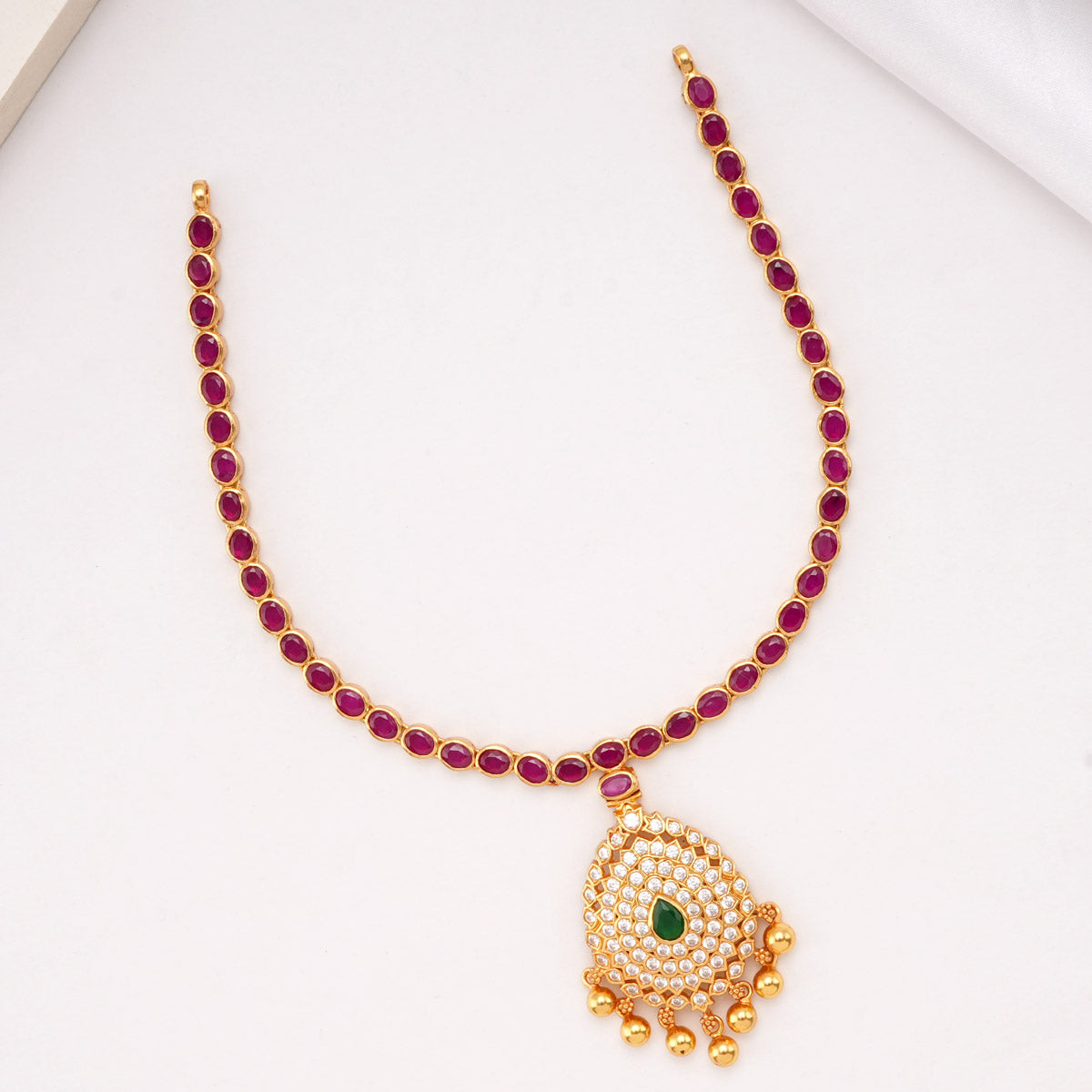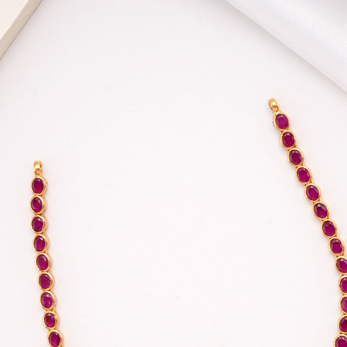 This 92.5 Silver, 24 kt gold-plated, stylish Necklace is studded with semi-precious stones to make a stunning statement. Perfect for any special occasion.
