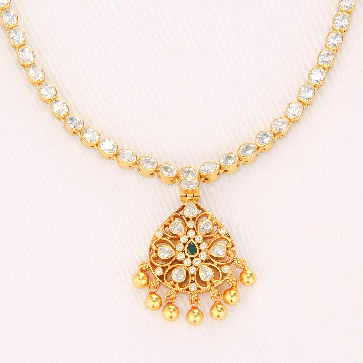 This 92.5 Silver, 24 kt gold-plated stylish Reversible Necklace is studded with semi-precious stones to make a stunning statement. Perfect for any special occasion.