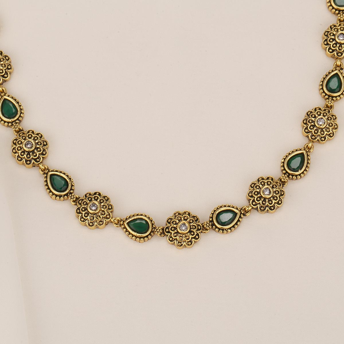 This 92.5 Silver, 24 kt gold-plated, stylish Necklace is studded with semi-precious stones to make a stunning statement. Perfect for any special occasion.