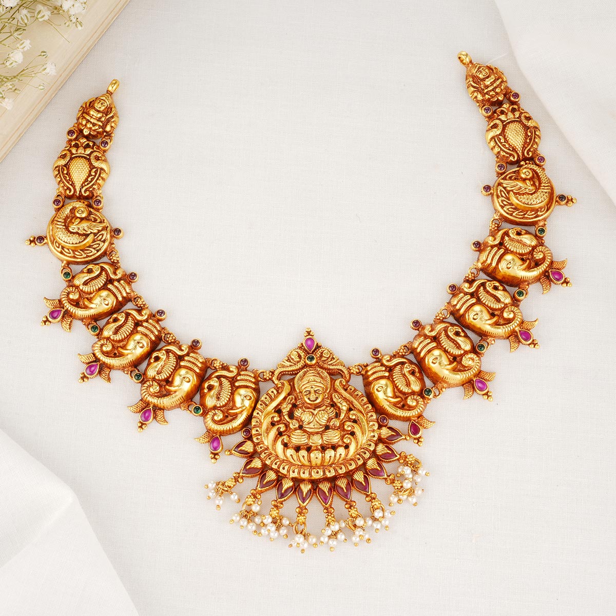Elevate your style with this Majestic Look Nagas necklace set. Crafted from 92.5 Silver and 24kt Gold Plated, this set boasts exquisite semi-precious stones for a dazzling effect. Make a statement with its unmatched design and elegance.