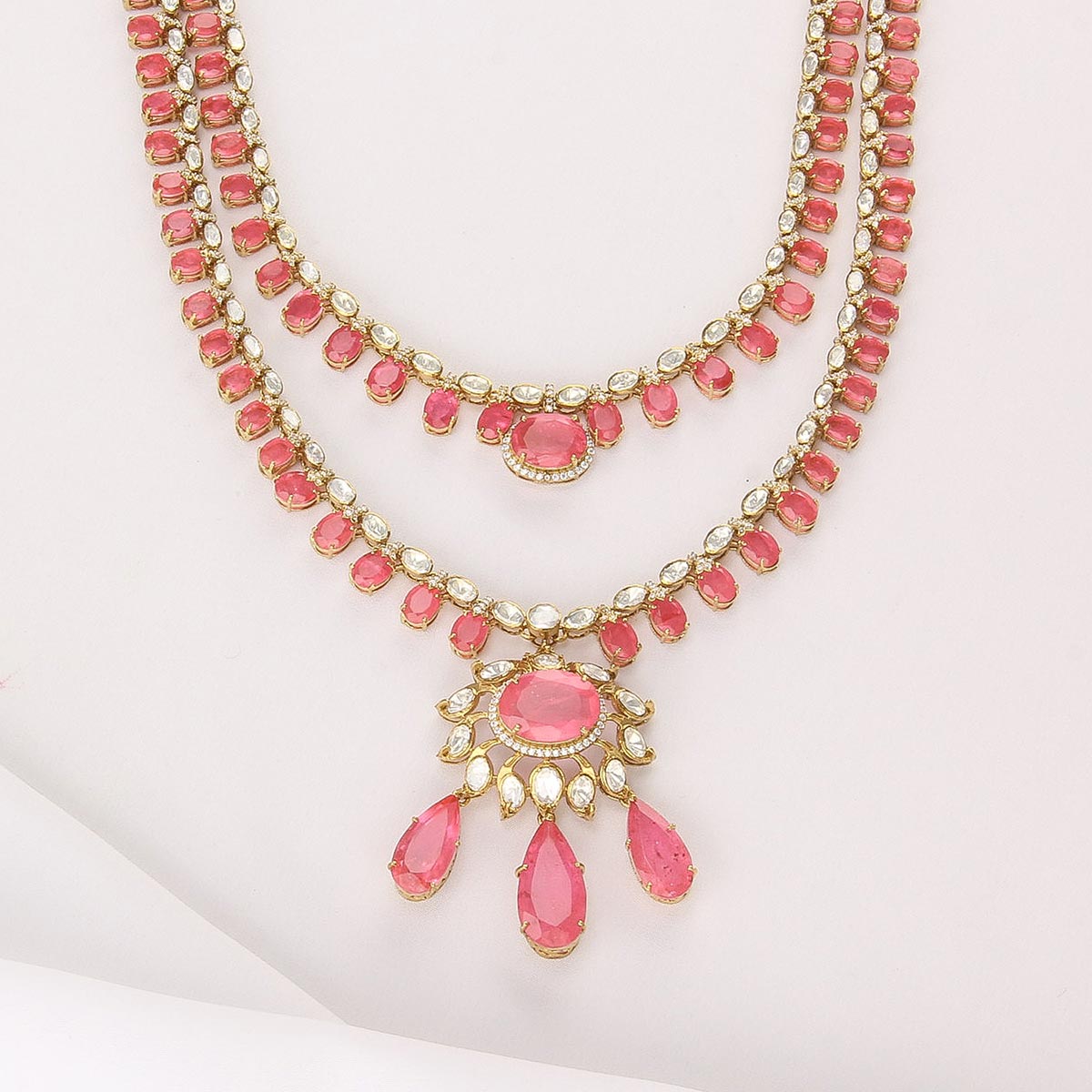 This necklace Set is crafted from 92.5 Silver and features 24-karat gold plating.