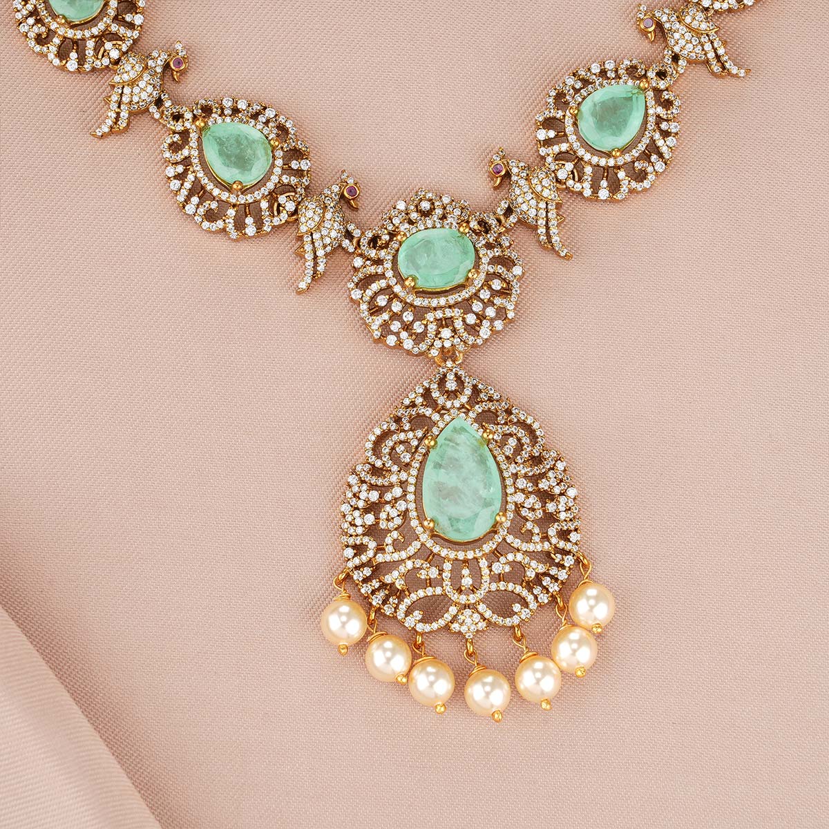 92.5 Silver, Victorian Necklace set studded with Gem Stones and Pearl Beads.