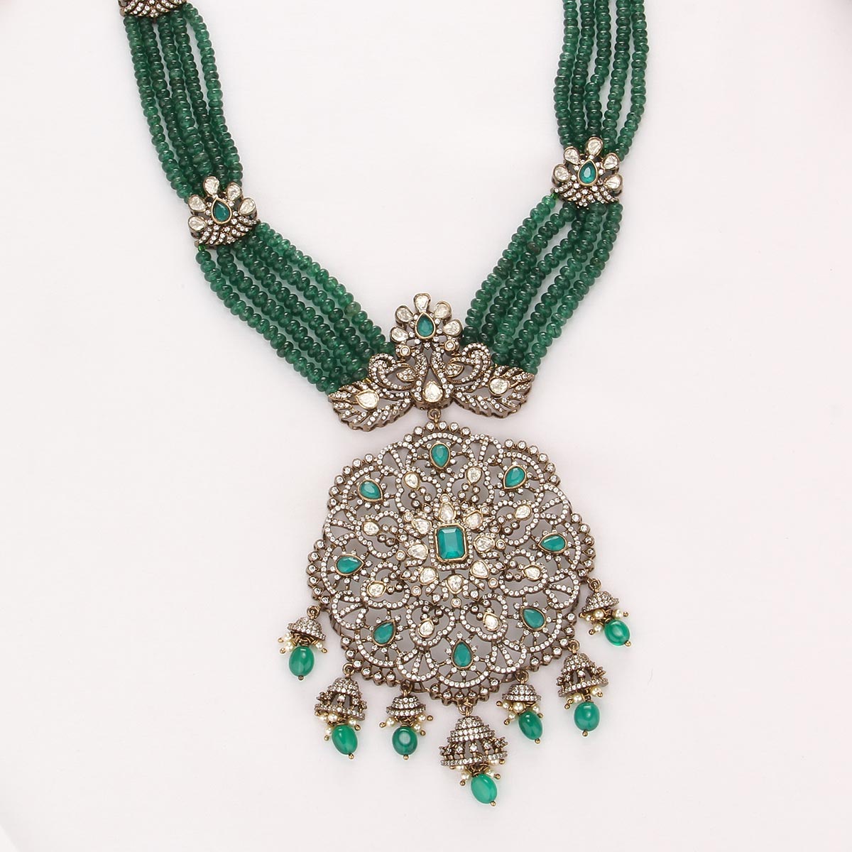 92.5 Silver, Victorian Necklace studded with Gem Stones.