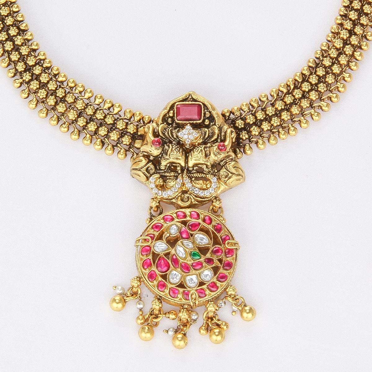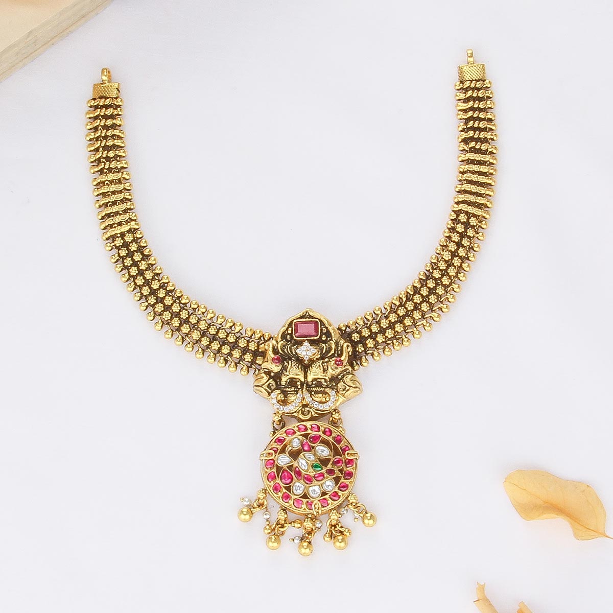 Elevate your style with this Majestic Look Nagas necklace. Crafted from 92.5 Silver and 24kt Gold Plated, this set boasts exquisite semi-precious stones for a dazzling effect.