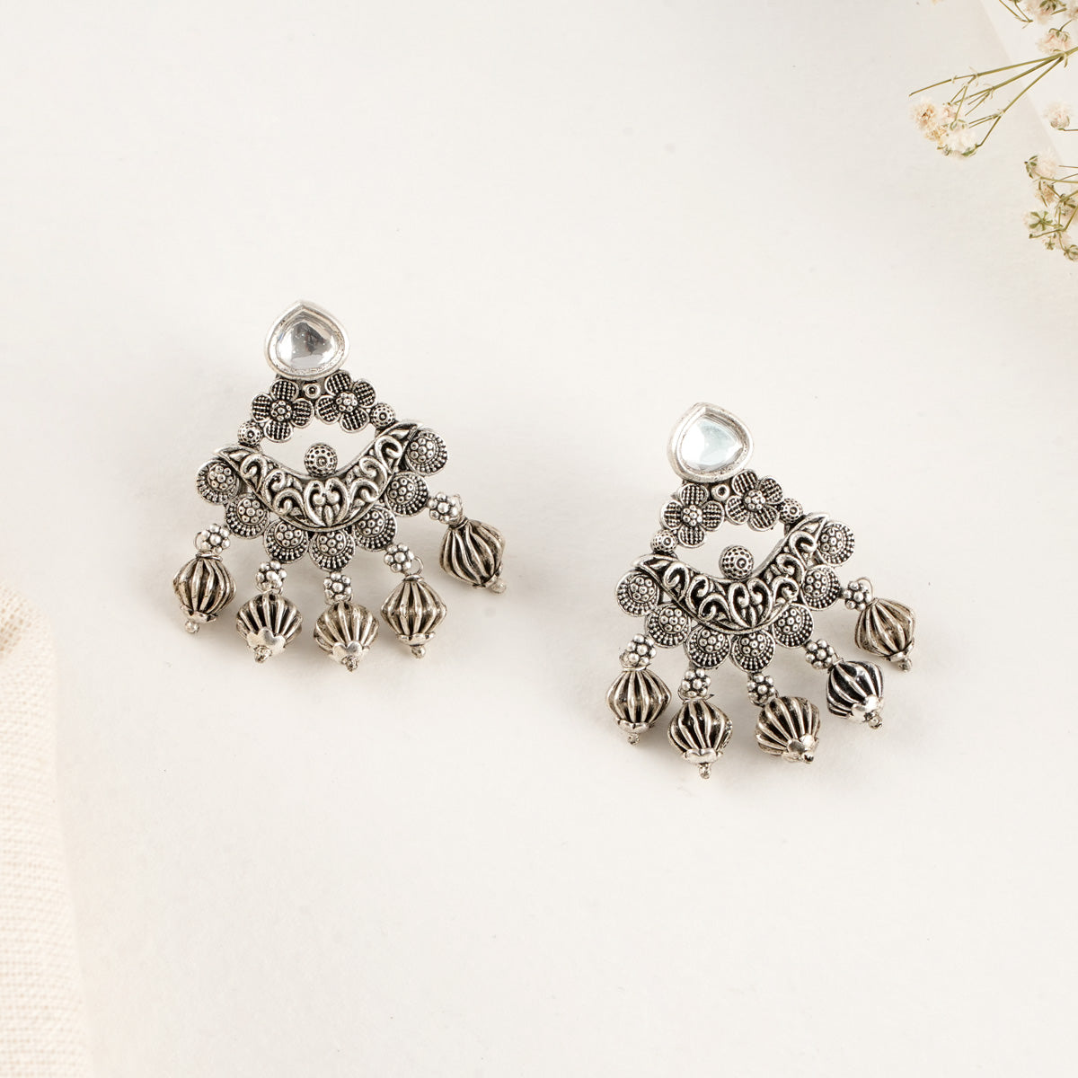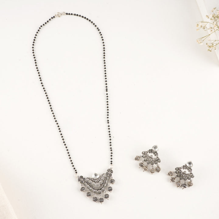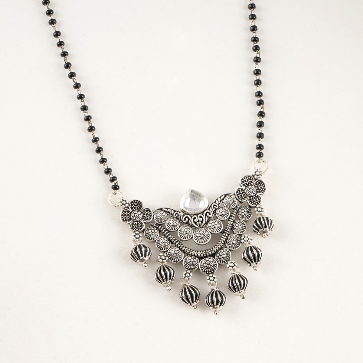 92.5 silver oxidized Necklace Set, Studded with Semi-Precious Stones.
