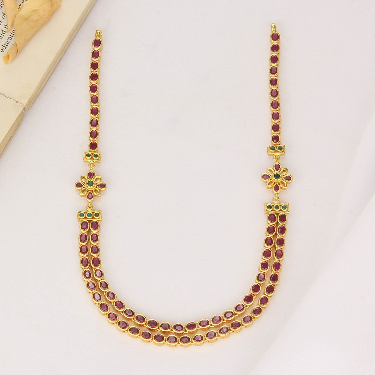 This 92.5 Silver, 24 kt gold-plated, stylish Necklace is studded with semi-precious stones to make a stunning statement. Perfect for any special occasion.