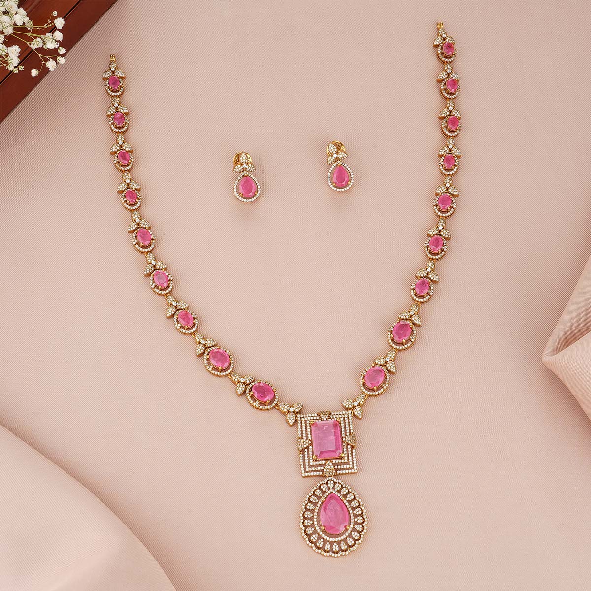 92.5 Silver, Victorian Necklace studded with Gem Stones.
