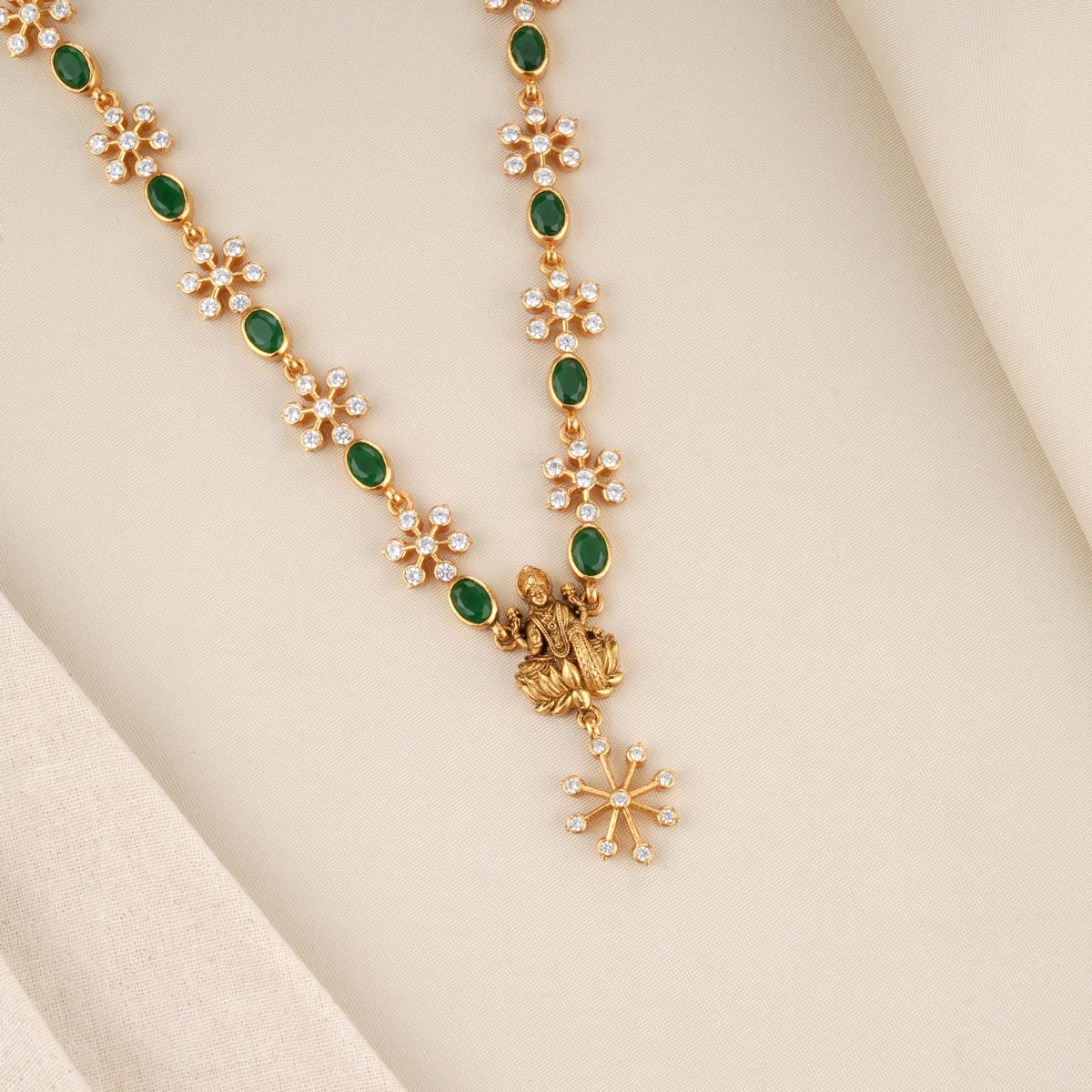 This 92.5 Silver, 24 kt gold-plated stylish Necklace is studded with semi-precious stones to make a stunning statement. Perfect for any special occasion.