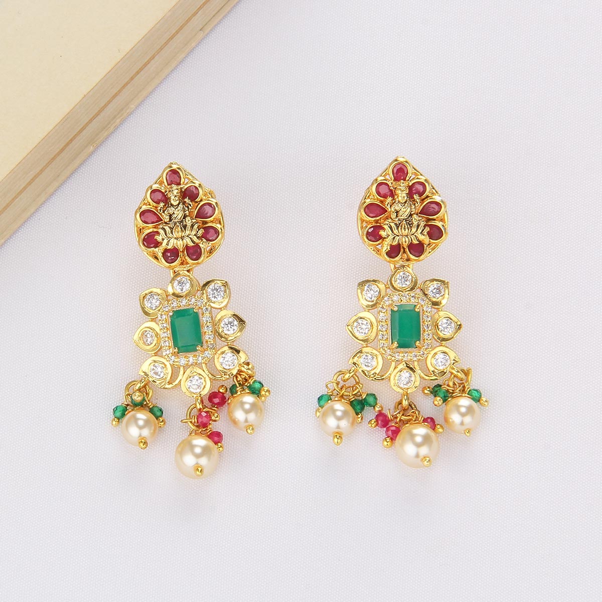 This 92.5 Silver, 24 kt Gold-Plated Short Necklace Set is adorned with Semi-precious Stones for a luxurious aesthetic.