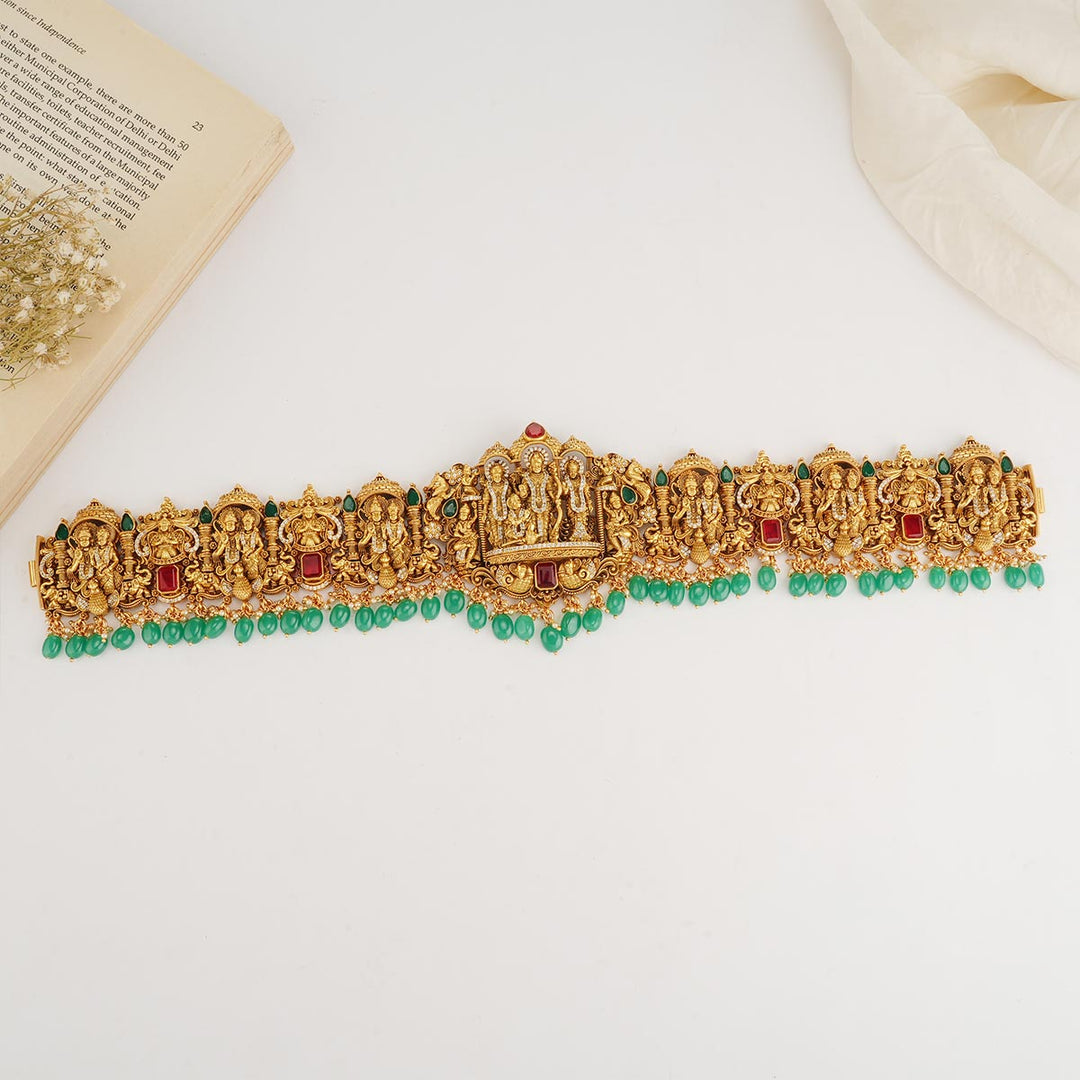 92.5 gold plated nagas oddiyanam/vadanam. this is studded with Semi-Precious stones that cast an auspicious blessing on the bride.