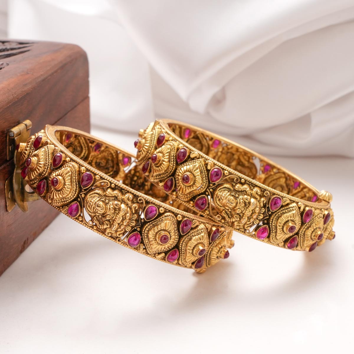 This Nagas Pair Bangle is a stunning jewellery crafted from 92.5 Silver and 24kt Gold Plating. Its intricate design is intricately studded with semi-precious stones, giving it an elegant, timeless look that adds sophistication to any outfit.
