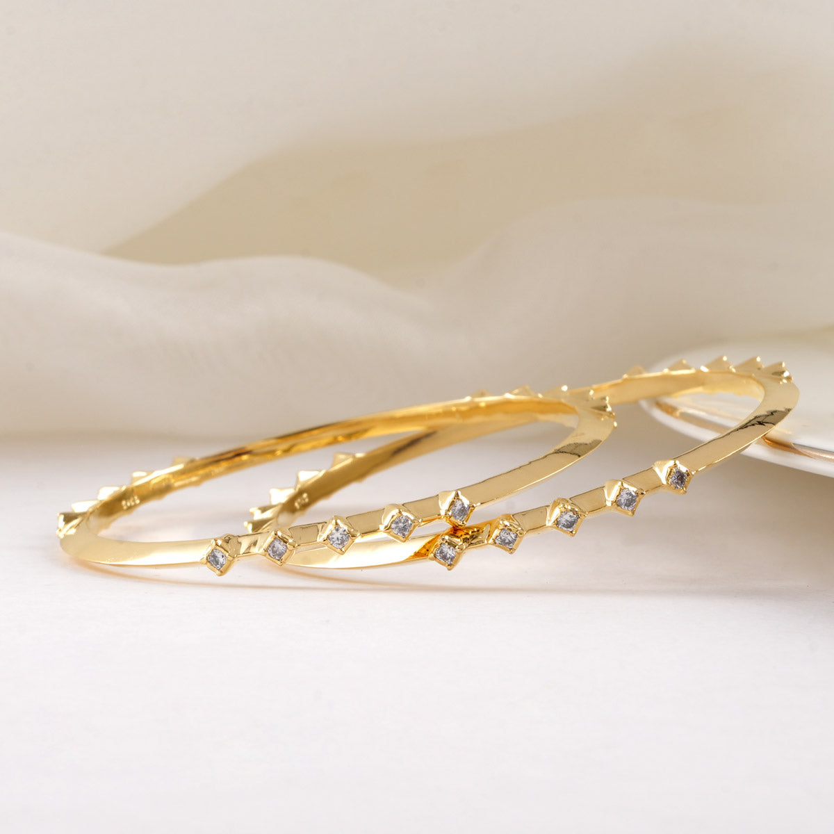 This 92.5 Silver, 24 kt gold-plated stylish Bangles is studded with semi-precious stones to make a stunning statement. Perfect for both formal and casual occasions.
