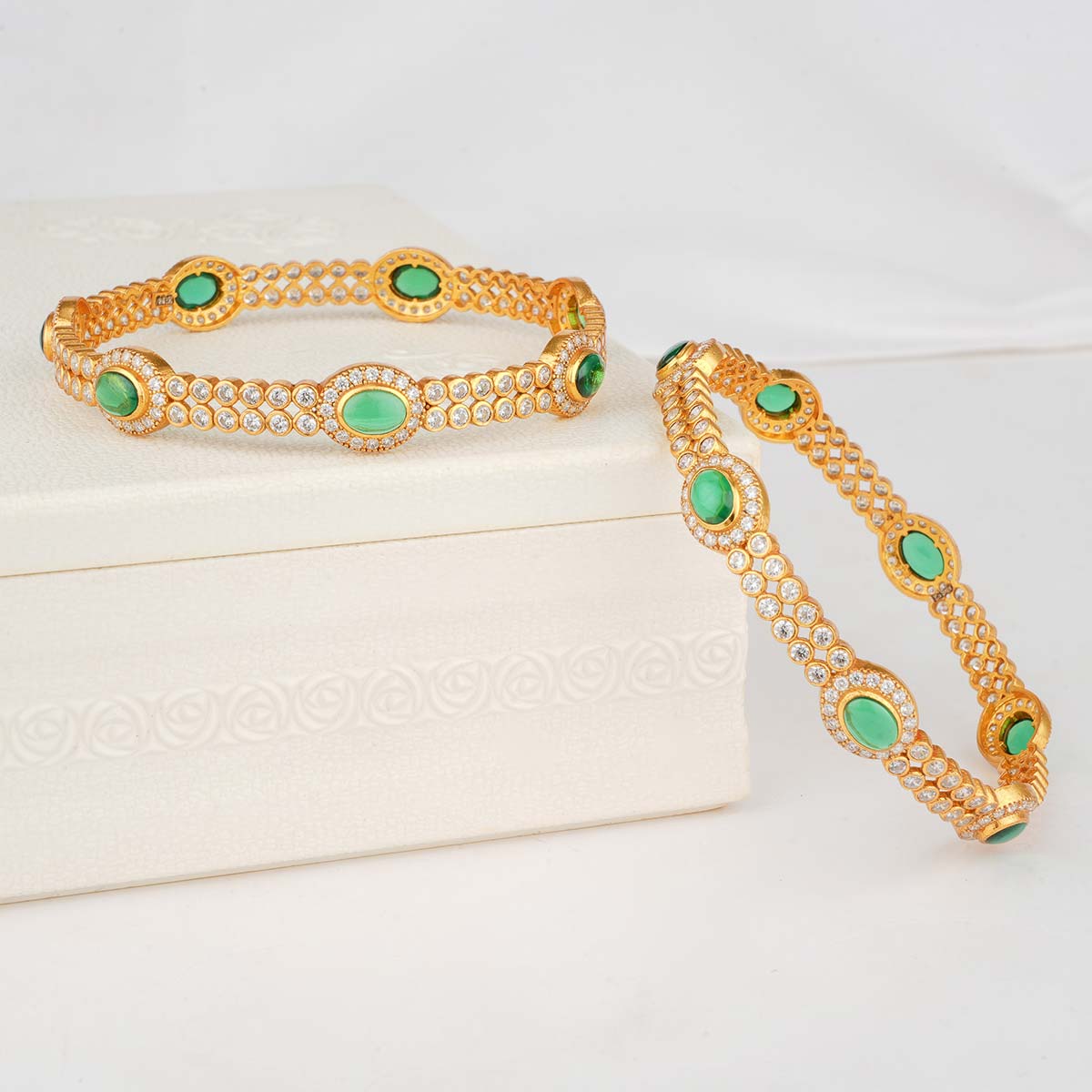 This 92.5 Silver, 24 kt gold-plated stylish Bangles is studded with semi-precious stones to make a stunning statement. Perfect for both formal and casual occasions.