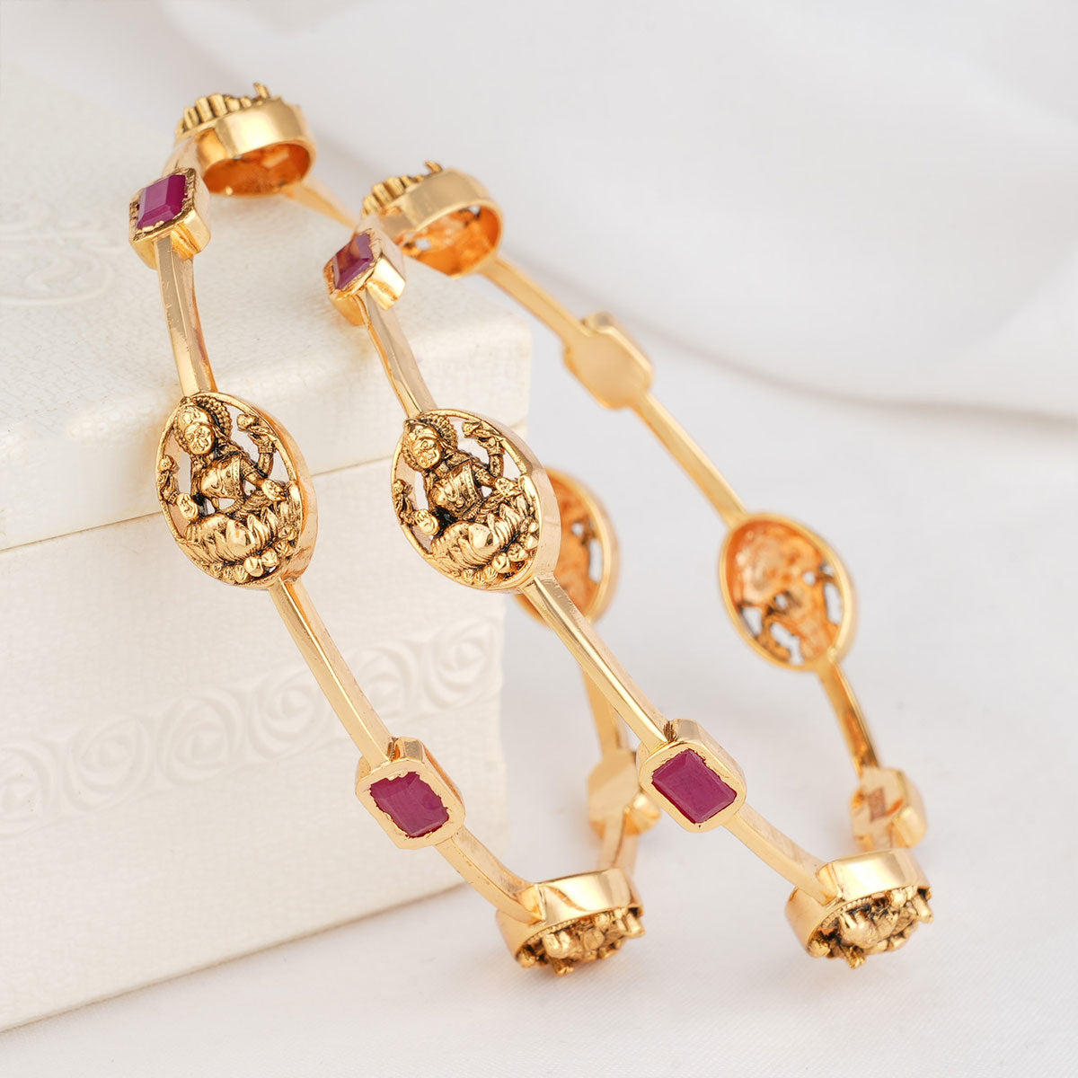This 92.5 Silver, 24 kt gold-plated stylish Bangles is studded with semi-precious stones to make a stunning statement. Perfect for both formal and casual occasions.