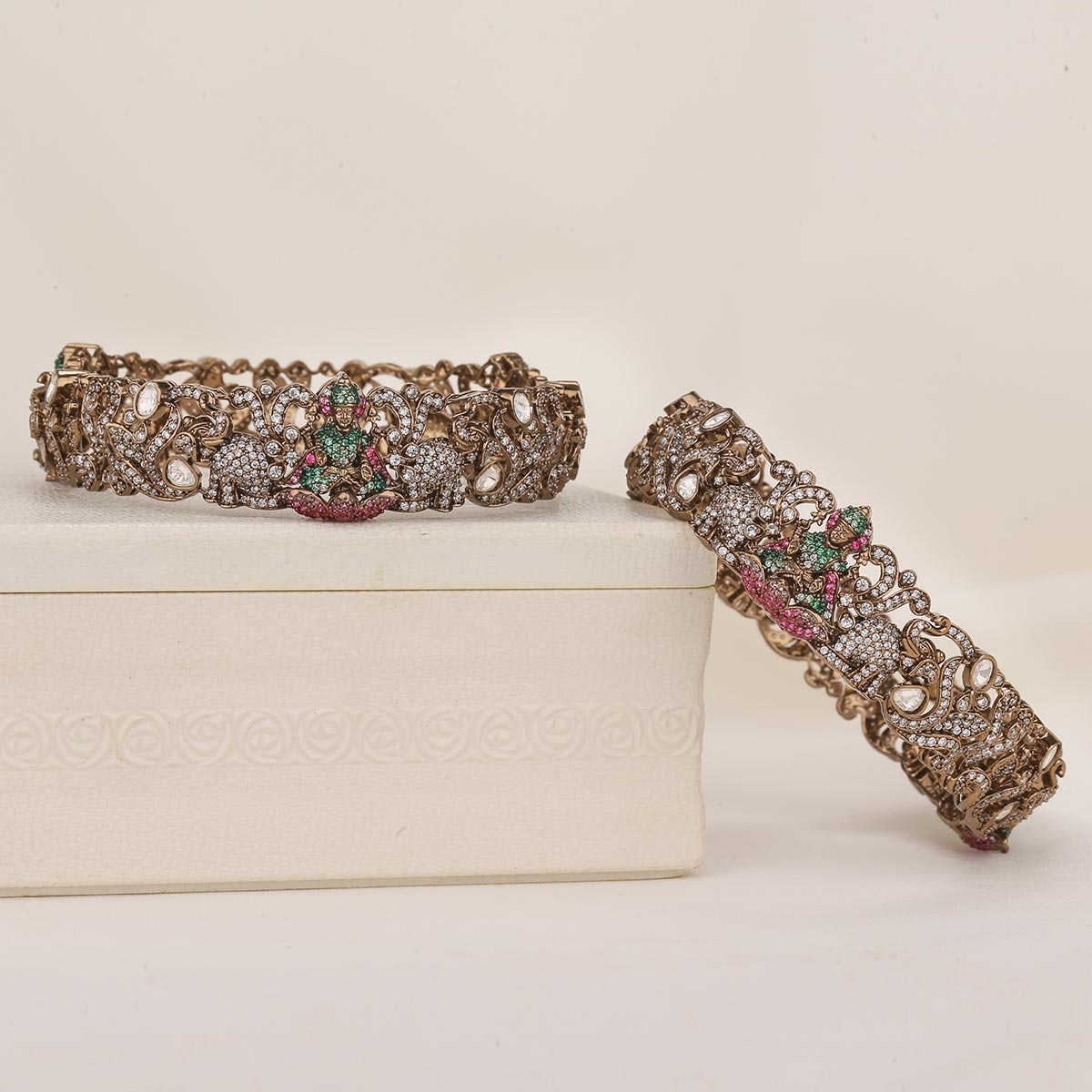 92.5 Silver, Victorian Bangles studded with Gem Stones.