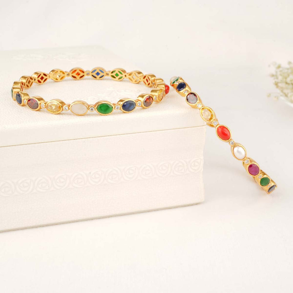Gold Plated Navarathna Silver Bangles Online | Oxidised Gold Plated Silver Pair Bangles
