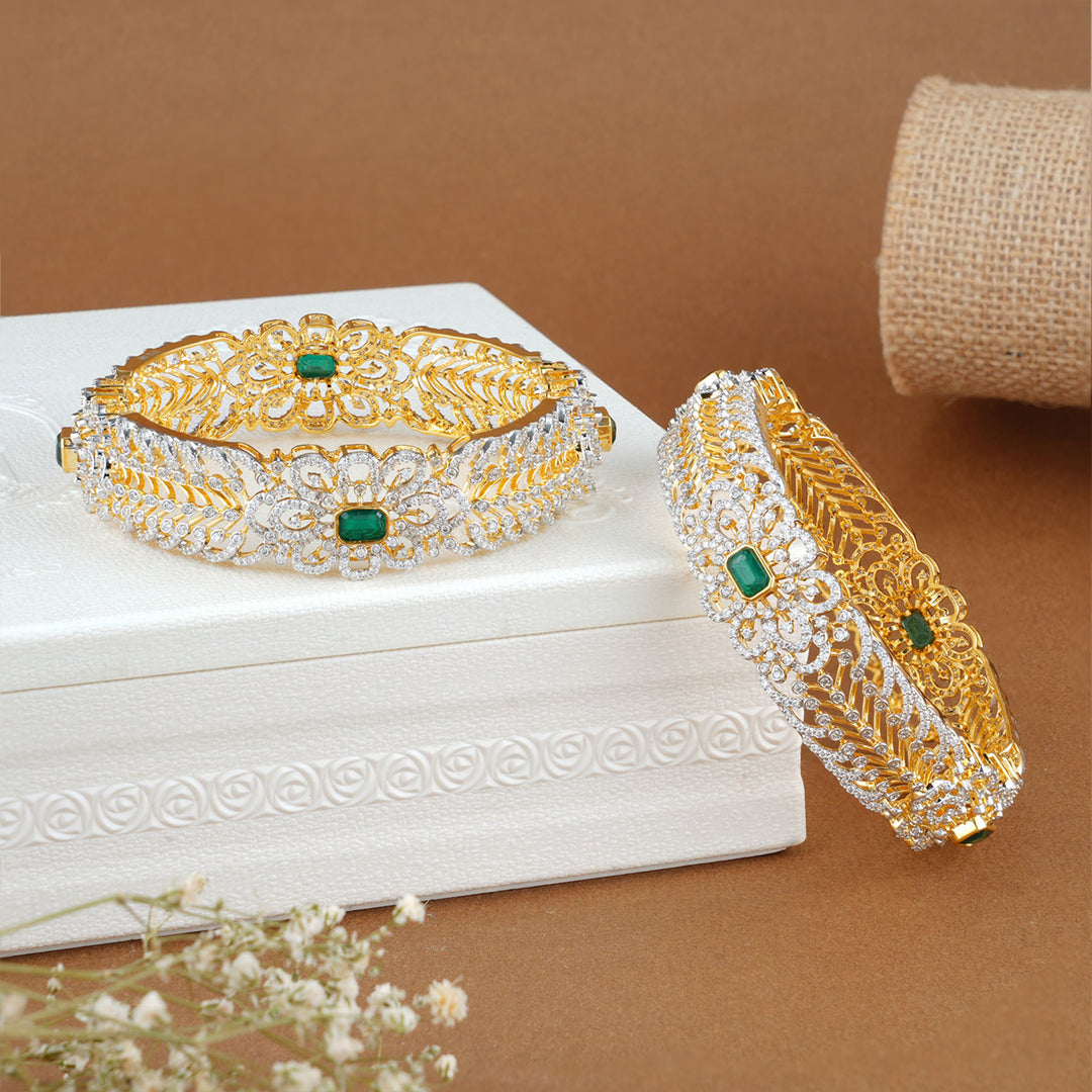 Shinning Green Stone Pair Bangles