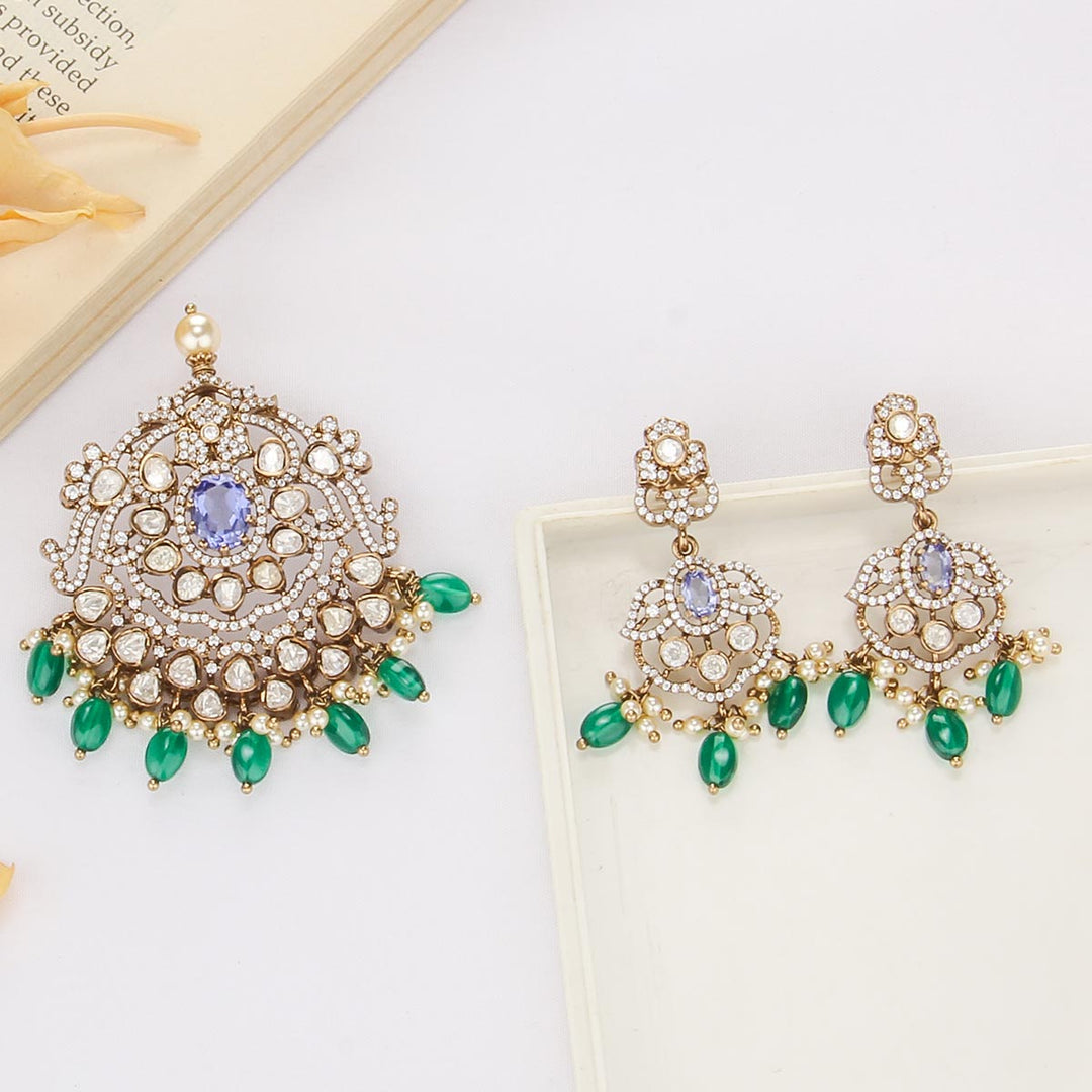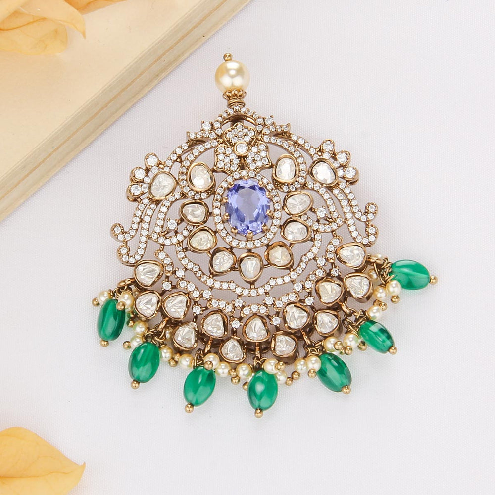 Gold Plated Silver Kundan Pendant | 925 Silver Pendant Set with Beads