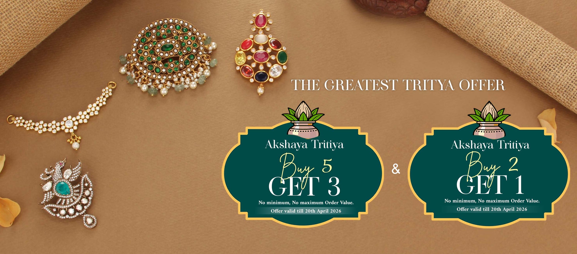 🥳"The Greatest Tritiya Offer is Live! Buy 5 Get 3 Free & Buy 2 Get 1 Free. Limited time only – April 1st to April 20th."✨