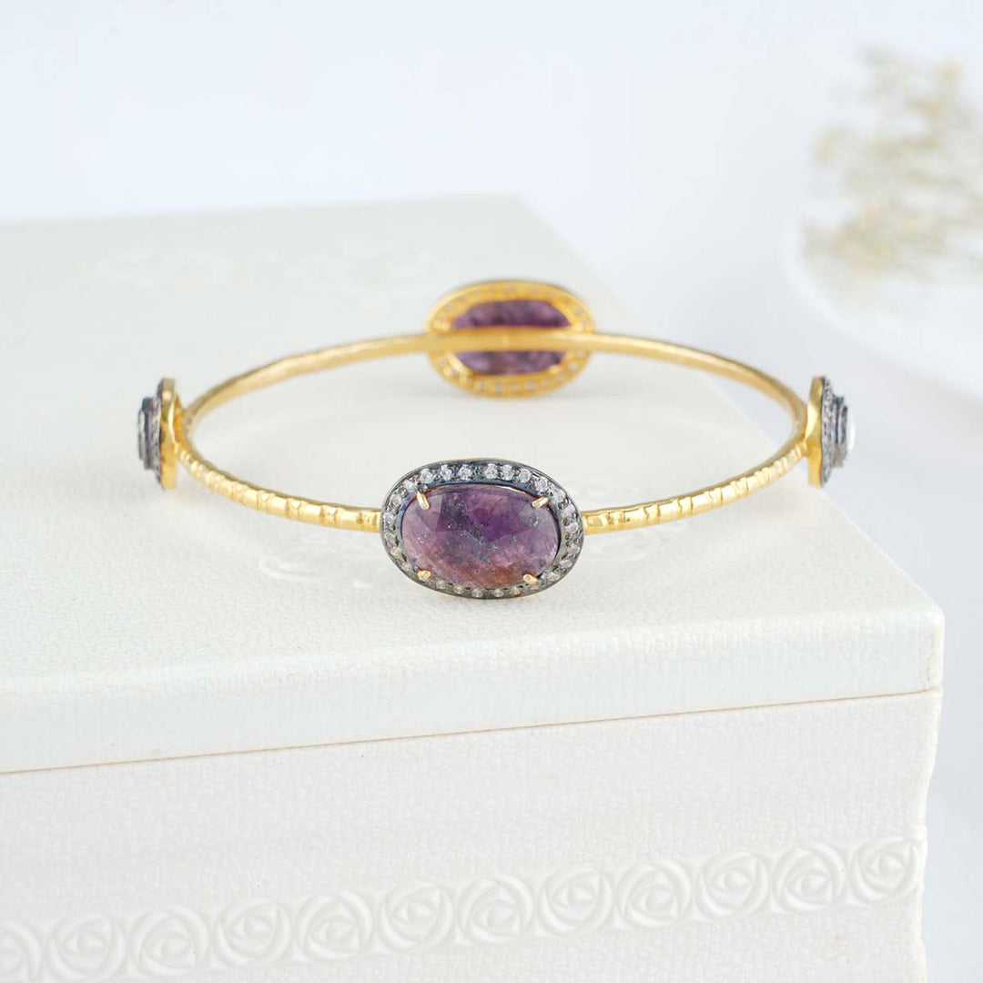 92.5 Silver, Victorian Bangles studded with Gem Stones and Pearl Beads.