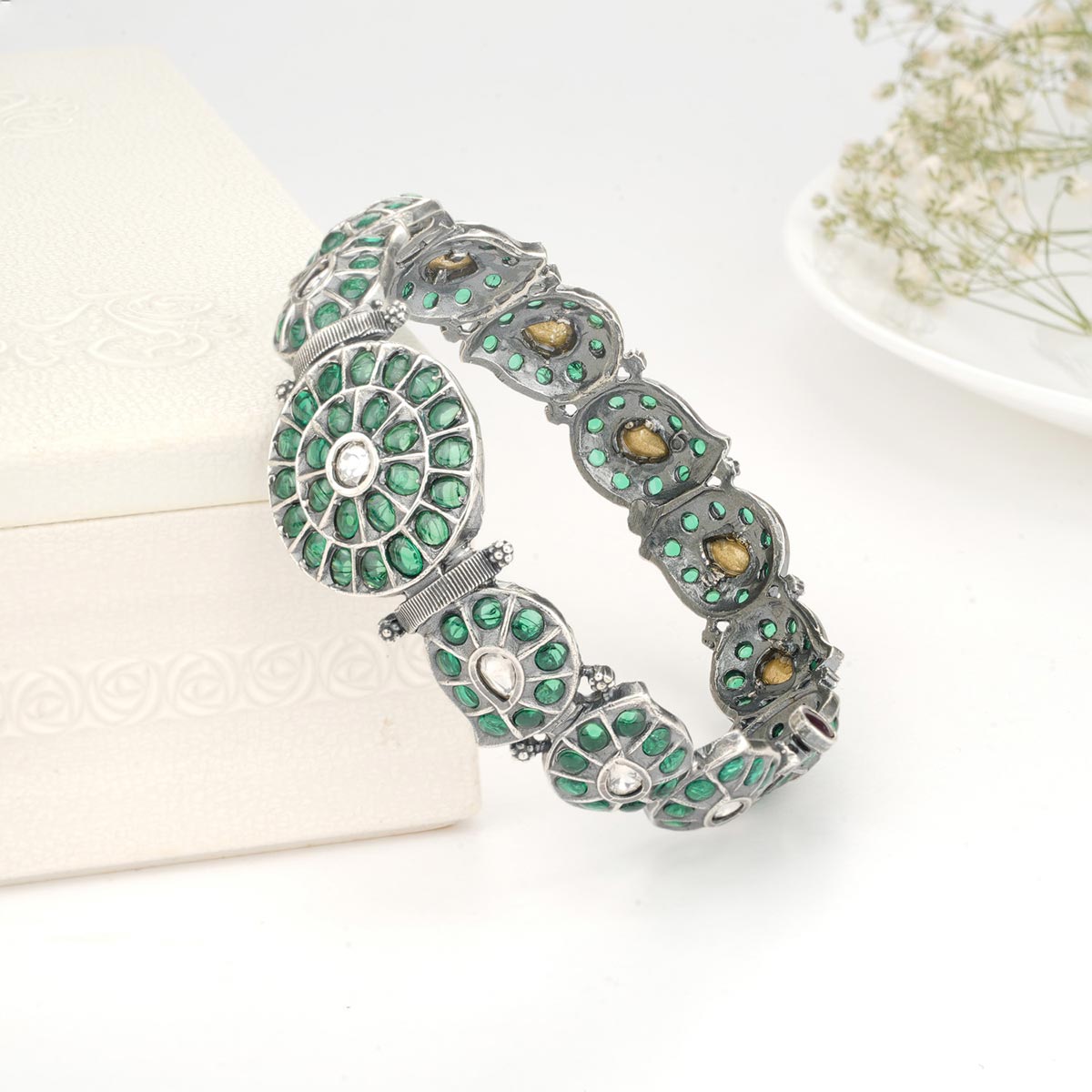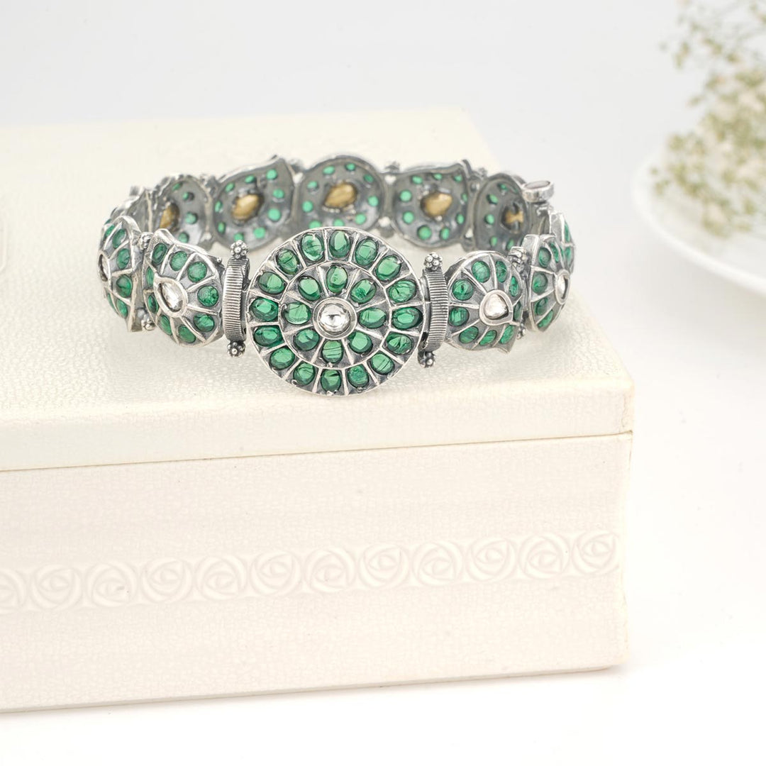 92.5 Silver Oxidised Bangle Studded with semi precious stones.