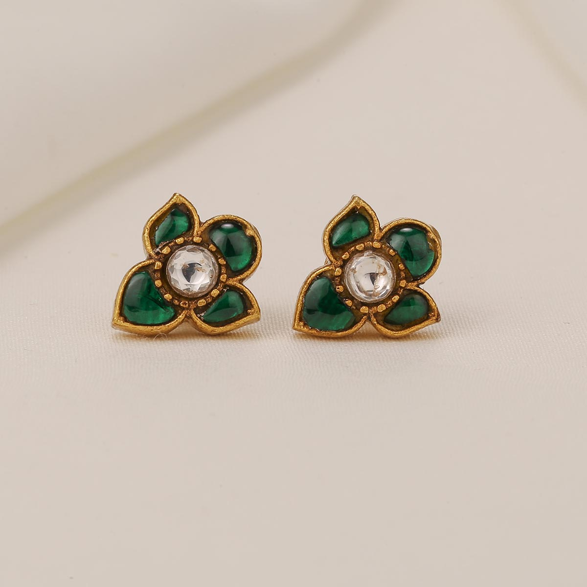 This 92.5 Silver, 24 kt Gold-Plated Earring is adorned with Semi-precious Kundan Stones for a luxurious aesthetic.