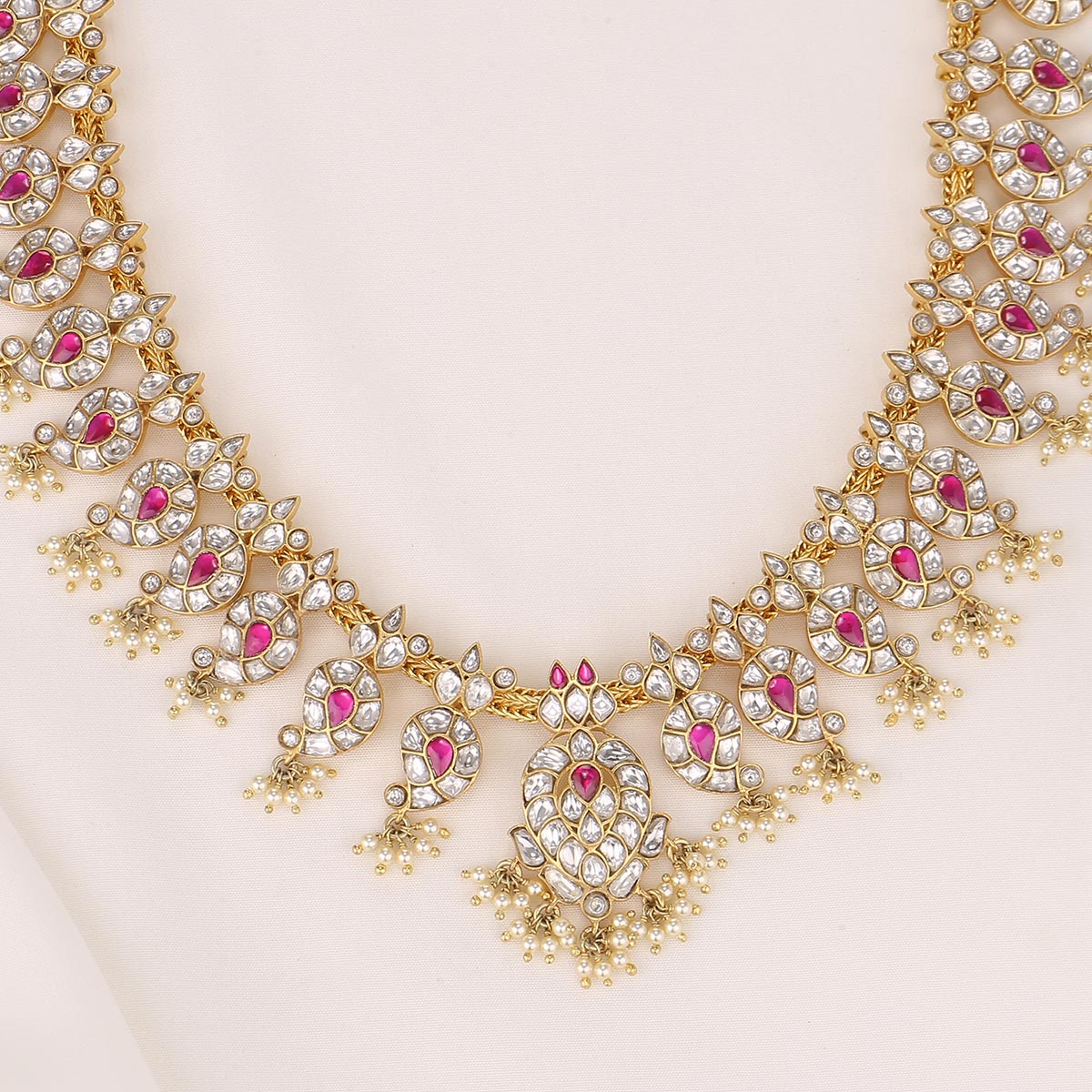 South Indian Kundan is an exquisite piece of Indian jewellery that has been a symbol of royalty for centuries. This timeless jewellery style remains a popular fashion choice, providing an enduringly fashionable elegance to any outfit.