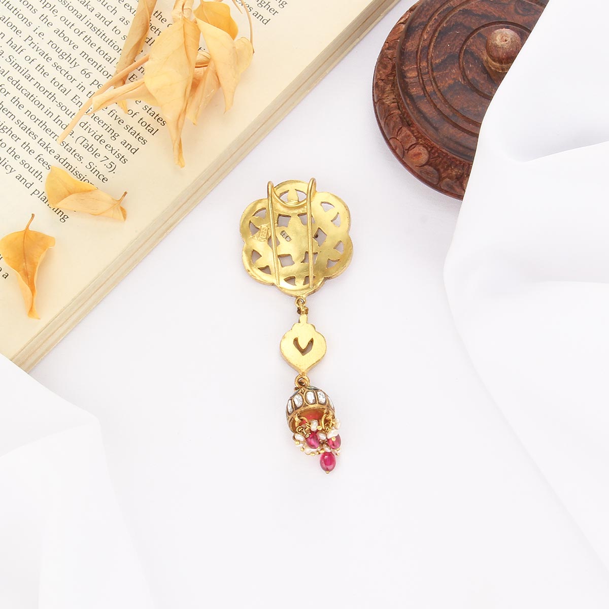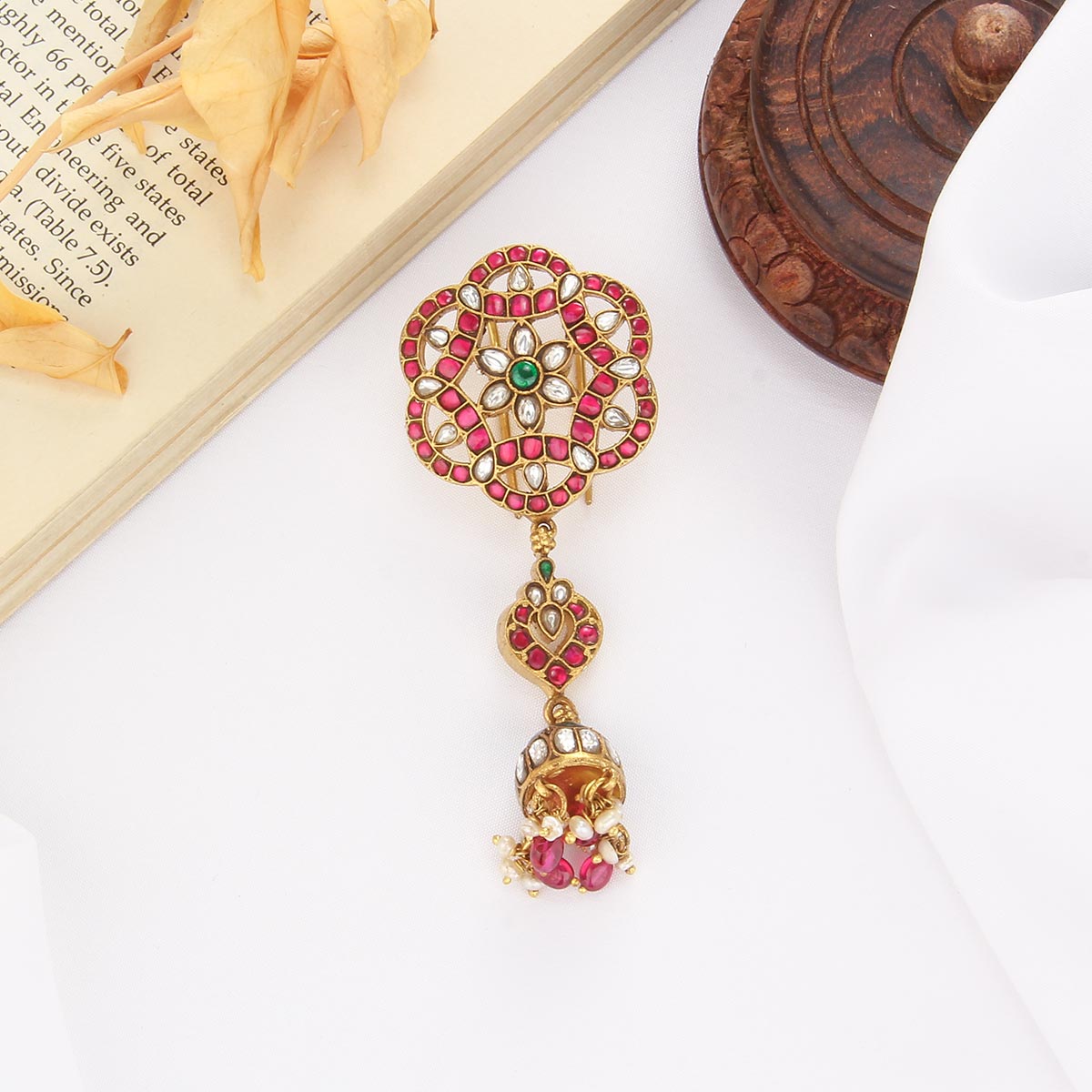 This 92.5 Silver, 24 kt Gold-Plated Jada Billa is adorned with Semi-precious Kundan Stones for a luxurious aesthetic.