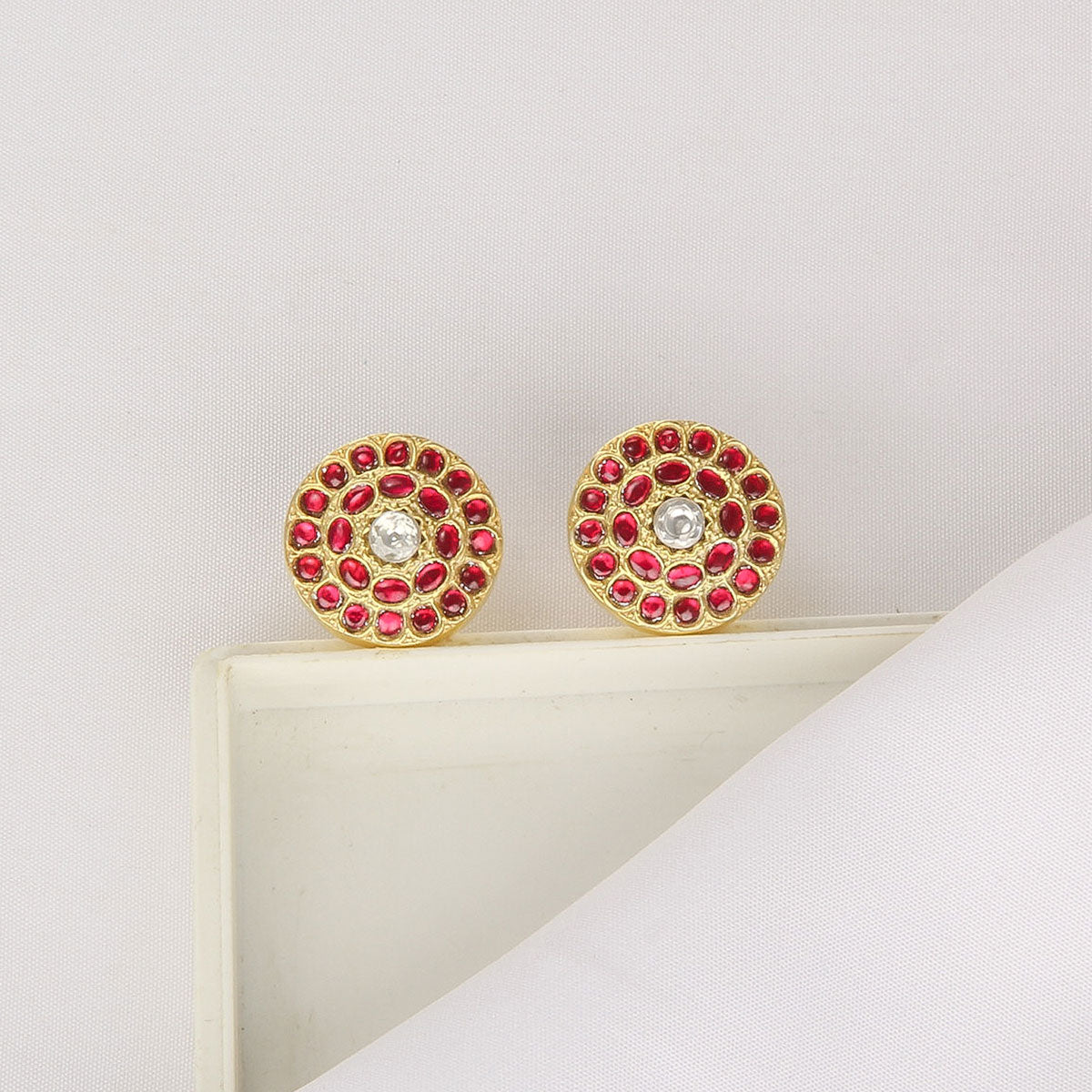 This 92.5 Silver, 24 kt Gold-Plated Choker Set is adorned with Semi-precious Kundan Stones and Beads for a luxurious aesthetic.