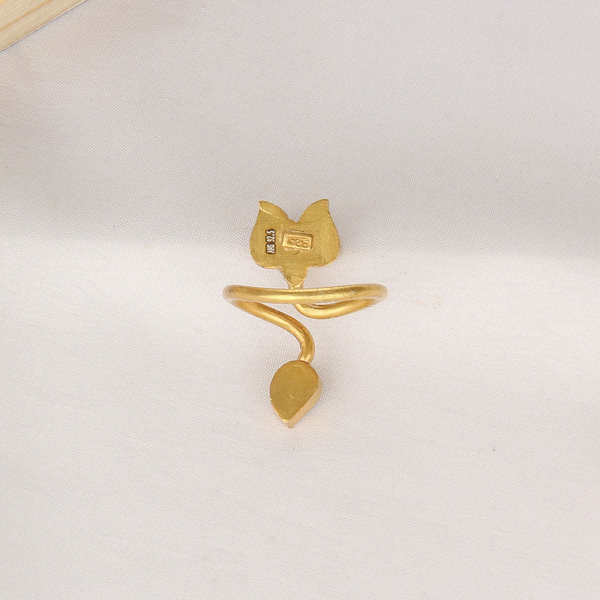 This 92.5 Silver, 24 kt Gold-Plated Ring is adorned with Semi-precious Kundan Stones for a luxurious aesthetic.