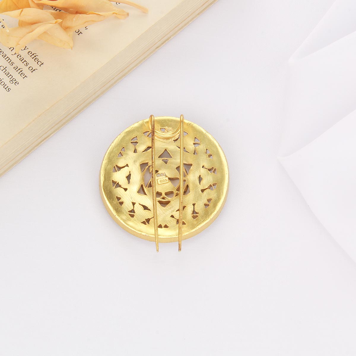 This 92.5 Silver, 24 kt Gold-Plated Jada Billa is adorned with Semi-precious Kundan Stones for a luxurious aesthetic.