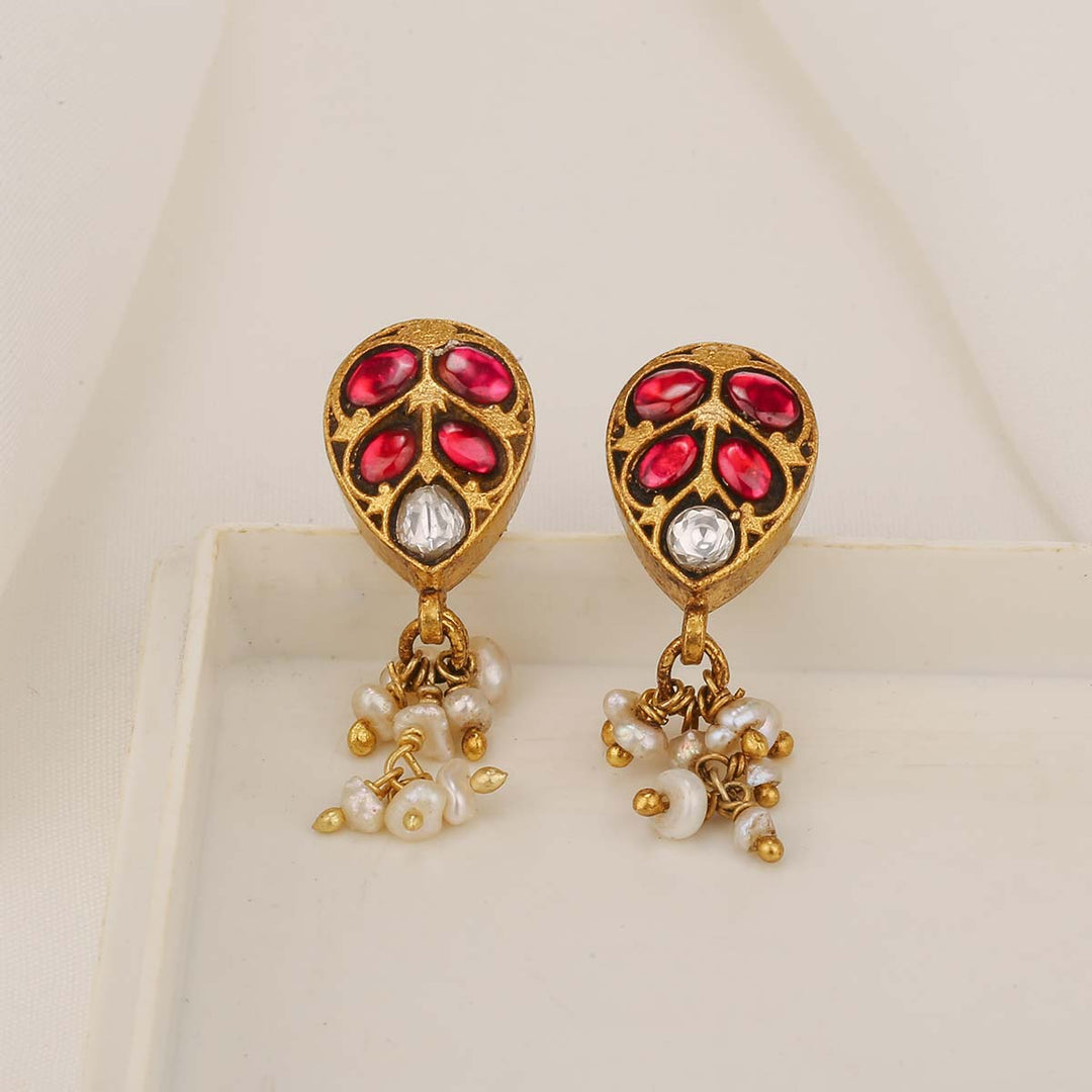 Charm Red Kundan Studs