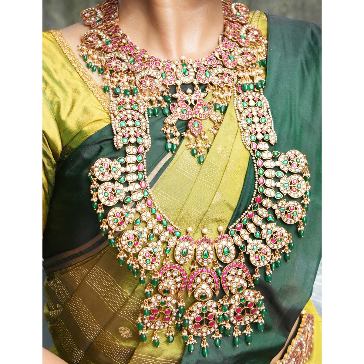 South Indian Kundan is an exquisite piece of Indian jewellery that has been a symbol of royalty for centuries. This timeless jewellery style remains a popular fashion choice, providing an enduringly fashionable elegance to any outfit.